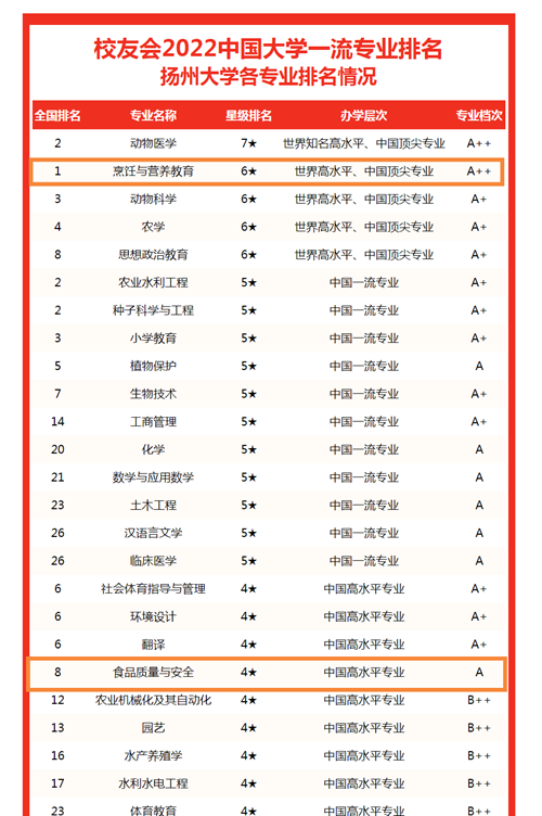 The specialty of Food Quality and Safety was awarded the 2022 China Four-star Specialty (4★), and promoted to the ranks of the world famous and China's high-level specialty.