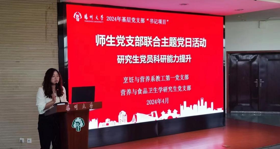 4月26日下午,烹饪与营养系教工第一党支部与营养与食品卫生学研究生党支部在笃行楼N302报告厅开展共建活动,重点围绕“党建+科研”进行分享交流。