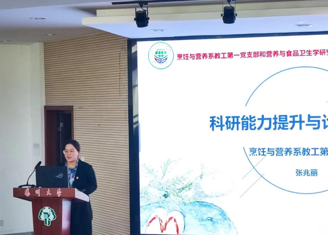 活动分为“政治学习”“科研分享”两个阶段。在“政治学习”阶段,师生党员围绕“学习党史是每一位党员的义务”“什么是‘三会一课’”“什么是‘新质生产力’”等展开深入讨论。在“科研分享”阶段,营养与食品卫生学研究生党支部党员代表结合自身实际,深入浅出地阐述了自己在科研过程中遇到的挑战与应对策略;烹饪与营养系教工第一党支部书记张兆丽以“研究生科研能力提升与论文写作技巧”为主题,从科研选题、文献综述、研究方法等方面传授了论文写作的实用技巧;营养与食品卫生学研究生党支部书记陈霞充分肯定了大家在科研方面所取得的成果,鼓励大家继续做好“党建+科研”的大文章,人人争做科研先锋。