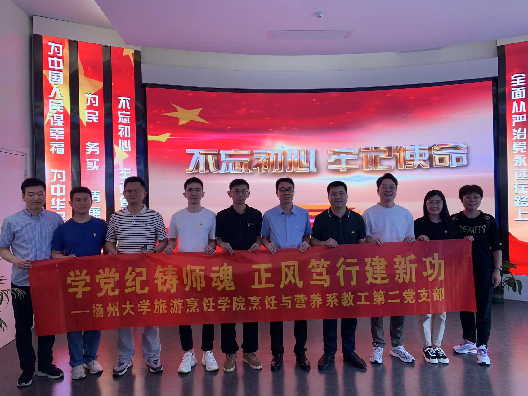 为扎实开展党纪学习教育,坚定支部党员理想信念,7月3日,烹饪与营养系教工第二党支部党员赴扬州市警示教育基地开展“学党纪铸师魂 正风笃行建新功”党纪学习教育。
