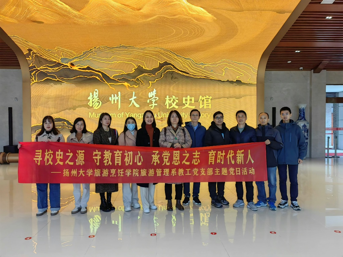 11月20日下午,旅游管理系教工党支部组织教师党员前往扬州大学校史馆参观,并开展了以“寻校史之源,守教育初心,承党恩之志,育时代新人”为主题的党日活动。此次活动旨在通过深入了解学校的发展历程,激发教师们的教育热情,坚定教育初心,进一步推动教学质量的提升。