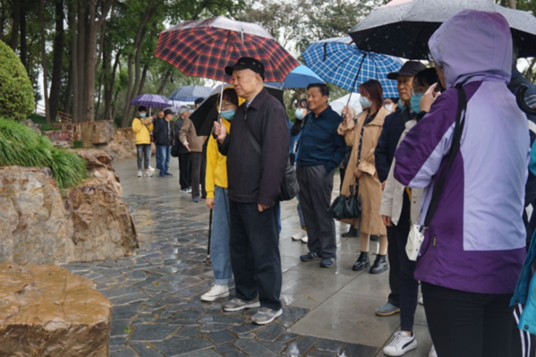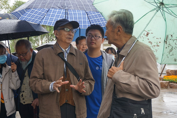 当天,每位同学们分别跟随着一名老同志。伴着连绵的小雨,双方在结伴而行的交流中收获了满满的欢乐,整体氛围十分温馨。