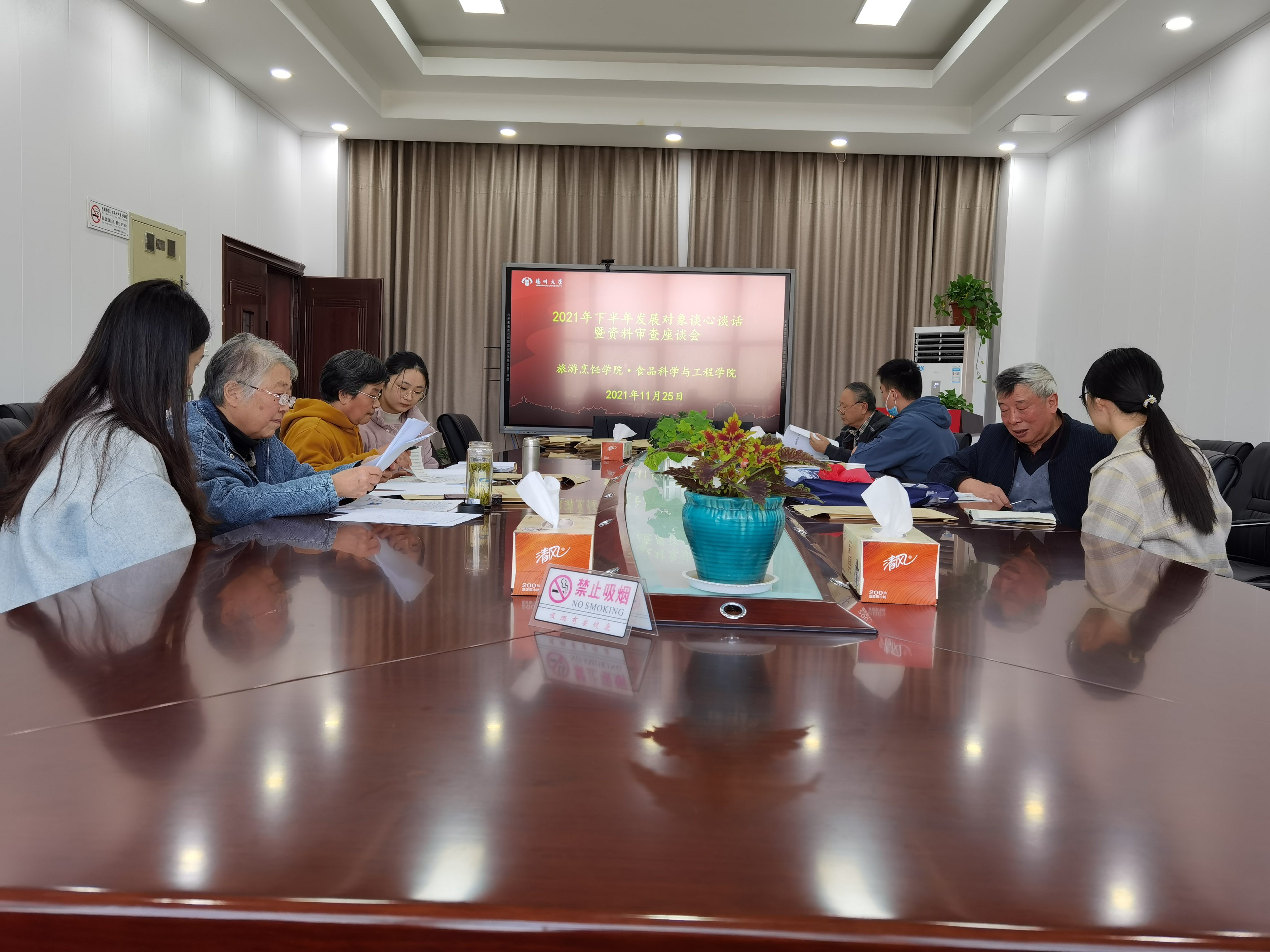 11月25日下午2:30,我院邀请校关工委副主任刘方云、盐阜路校区离退休党总支书记骆华、老同志赵海粟、施爱武审查我院下半年发展对象谈心谈话暨资料审查座谈会,材料共58份,发展对象同老同志进行深入交流,向老党员讨教学习、工作方法,特别是如何发挥党员先锋模范作用。