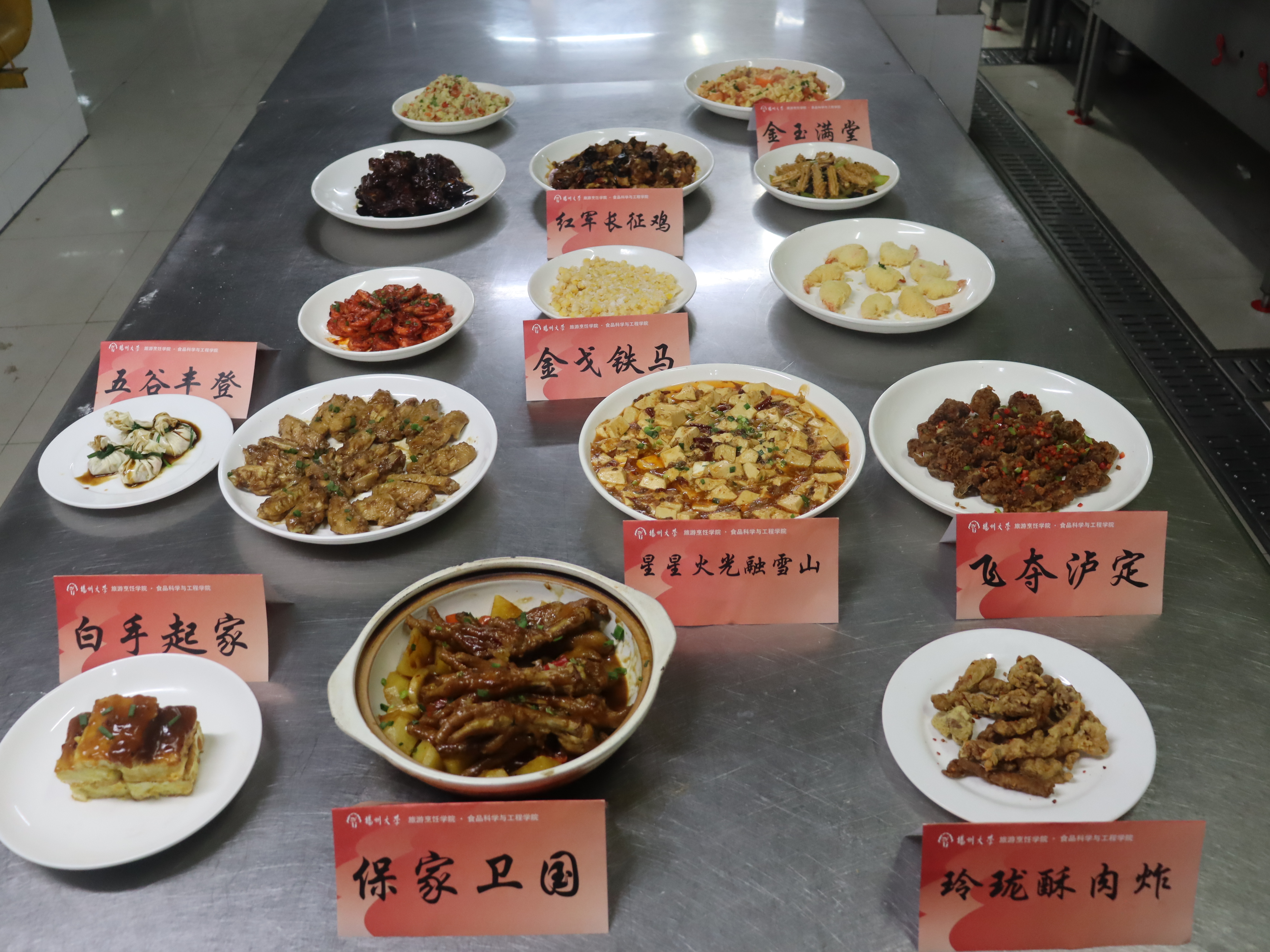 “红色主题设计要求我们了解中国共产党的历程,表现出美食与红色的联系。”“毛氏红烧肉”、“金戈铁马”等等菜名让在场同学们耳目一新,这些菜肴无不展示出同学们对红色主题的思考与用心。