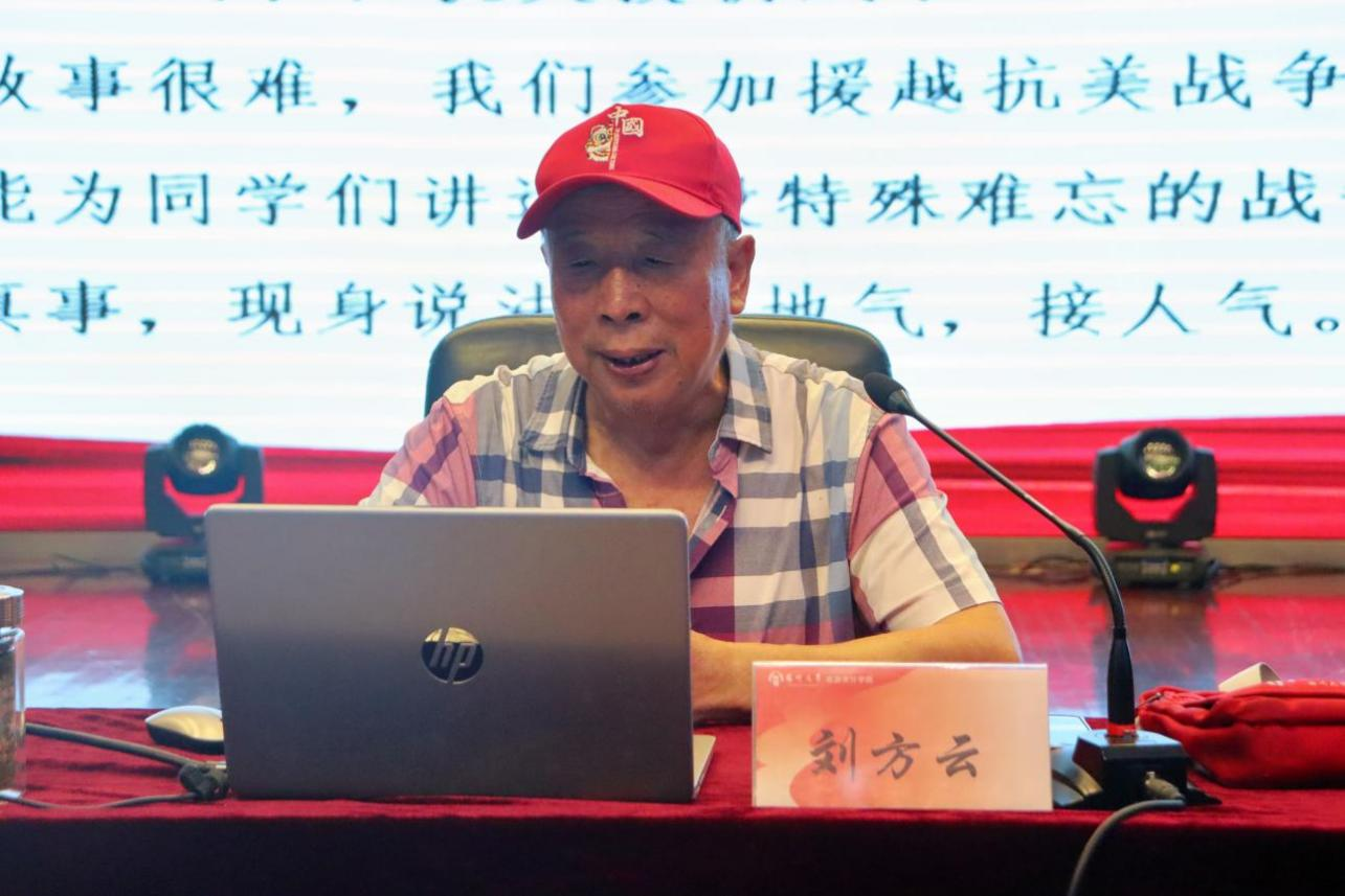 在讲座中,刘方云老师通过14个小故事串联人生经历,将自己的过往人生娓娓道来。苦难而坎坷的童年经历使他坚定了“人穷志不穷”的信念,母亲的关怀与党的照耀引领着他向未来进发。在入伍后,刘方云老师奋不顾身的带队救火,在援越抗美战场上不顾危险救战友,他用自己的经历,向同学们讲述革命先辈们无私无畏的精神。