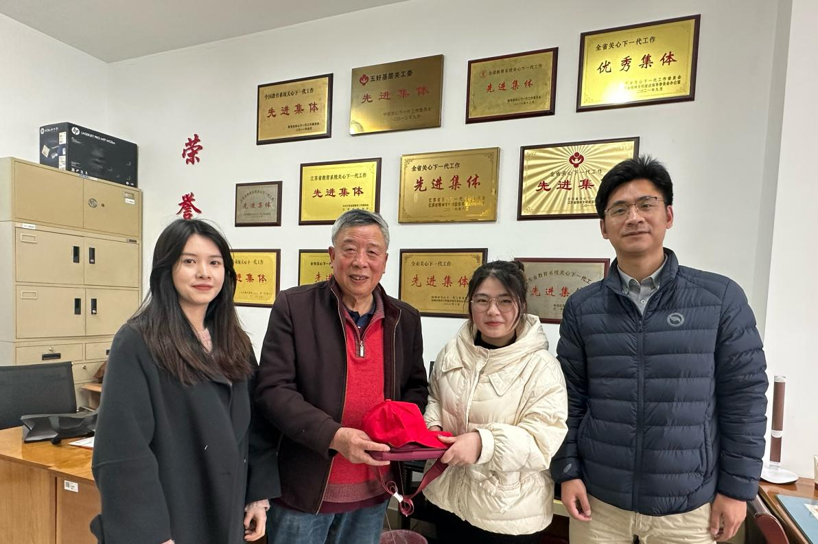 3月27日下午,扬州大学旅游烹饪学院团委副书记徐华林、辅导员王丽琼及共建班学生们像往常一样拜访刘爷爷,学生代表将新的小红帽、小红包赠送给刘爷爷。刘爷爷表示:“感谢孩子们对老同志的关怀与关心,我心里十分温暖,要不是你们注意到我这泛着年代感的小红帽、小红包,我自己都忘了用了这么多年啦!我这个人一辈子勤俭节约习惯了,有能力的时候就希望能帮帮你们这些孩子,以后我会继续背着新的小红包,戴着新的小红帽,持续推进关工委的相关工作,促进共建‘匠心班’更好的发展”。