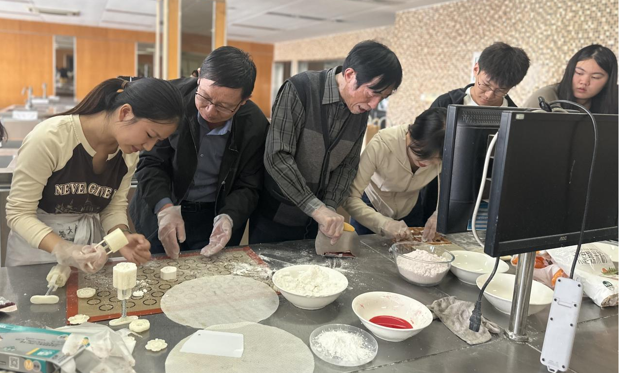 接着,老同志们与同学们一起制作重阳糕、捏柿子、插花。从捏馅、压粉到出锅,每一个步骤都意义非凡。在制作过程中,拉近了老一辈与青年学生的距离,弘扬传统文化。活动最后学生们带着制作的重阳糕及“柿柿如意”粘土作品一起看望校关工委的老同志。师生们一起携手共庆九九重阳节。