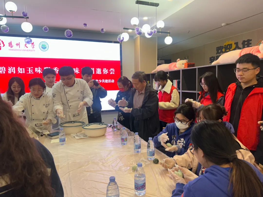 4月3日下午15:00,我院与安歆青年社区联合开展“碧润如玉味飘香,美味青团邀你尝”老少共建活动,活动邀请盐阜路离退休党总支第一党支部书记沈桂林,共建班级旅游2302班、烹饪D2305班级同学参与。
