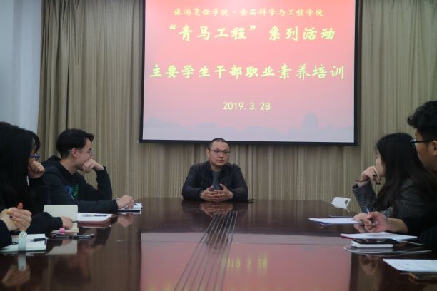 3月28日,扬州大学旅游烹饪学院·食品科学与工程学院优秀毕业生史祖福校友返校,为学院主要学生干部进行了长达2小时的素质培养交流。本次培养会在笃行楼二楼团委会议室举行,由史祖福老师主持并主讲,参会人员为院四会三中心主要学生干部。