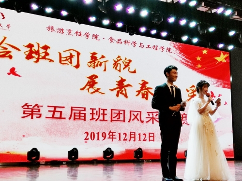 12月12日晚七点,旅游烹饪学院·食品科学与工程学院在文体馆三楼举办了以“绘班团新貌,展青春风采”为主题的第五届班团风采大赛。校党委常委宣传部部长张信华、校研究生工作部部长吴刚、校党委学生工作部副部长、学生处副部长陈轶群、校团委副书记刘斯文、院党委书记孙云寿、院党委副书记解小青、副院长韩春鲜、副院长杨振泉、副院长毛卫东等领导莅临本次大赛现场。同时,到场的还有院学生工作领导小组成员、班主任、辅导员以及学生代表们。