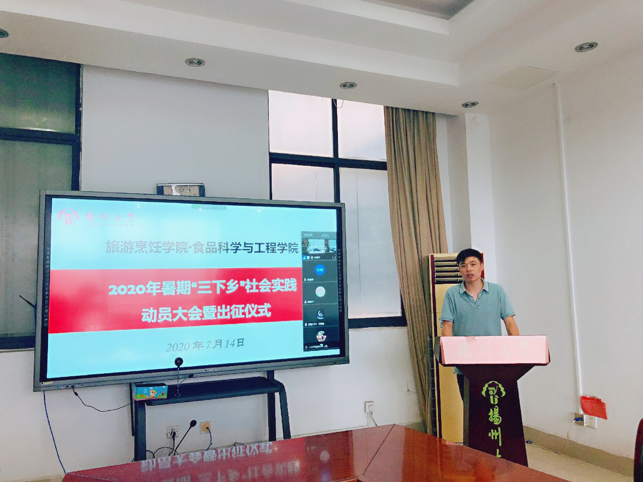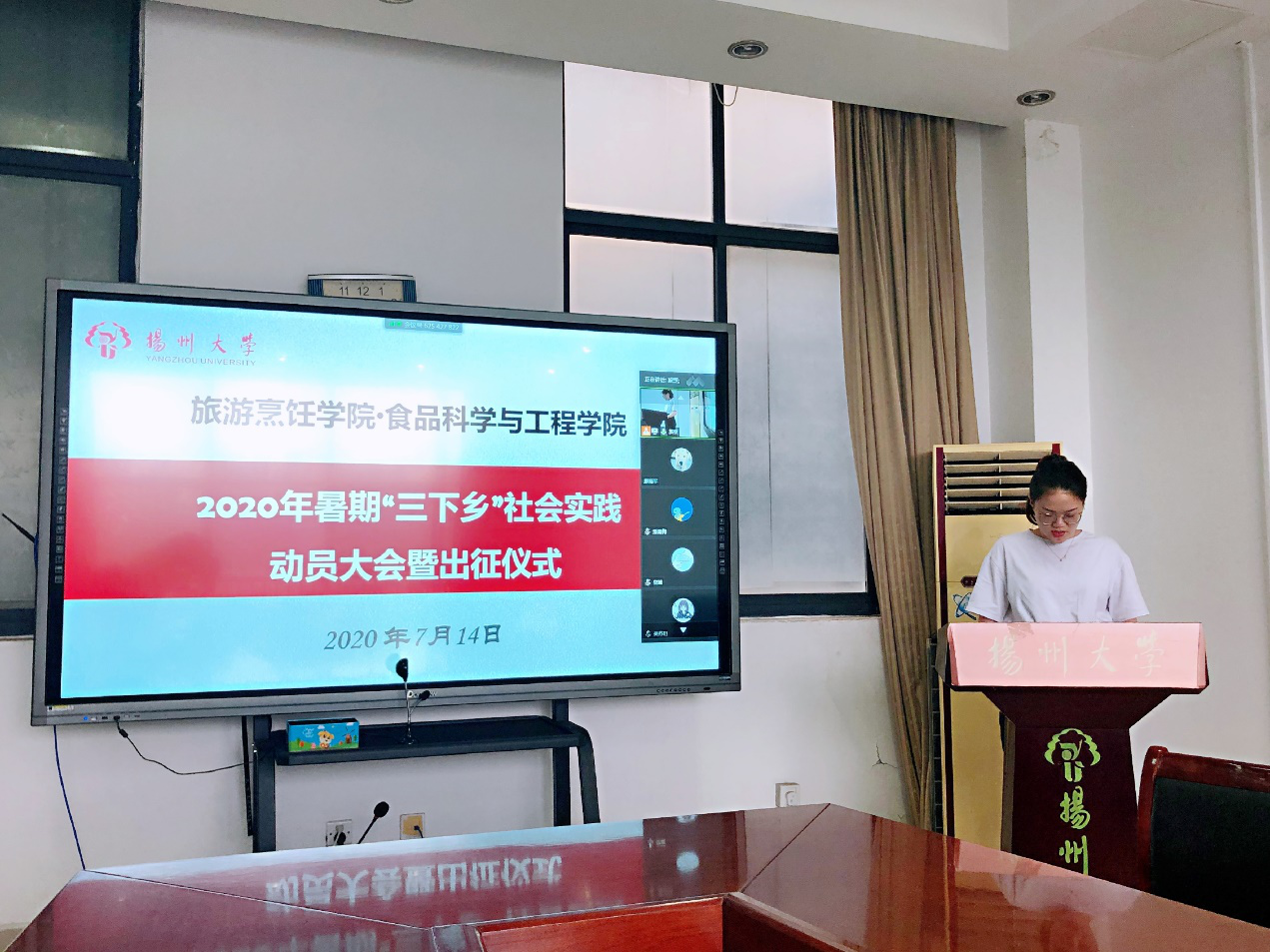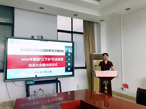 7月14日上午九点,旅游烹饪学院·食品科学与工程学院在笃行楼三楼会议室召开了暑期“三下乡”社会实践动员大会暨出征仪式。院党委副书记解小青、院团委书记王敏、副书记徐华林、辅导员孙雪凡及学生代表奚琦参与了本次动员会。18、19级各班级班长、团支书、实践委员通过腾讯会议的方式线上共同参与。本此会议由王敏书记主持。