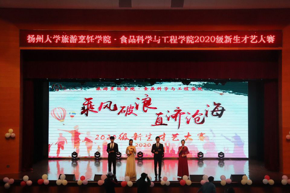 10月31日晚七点,旅游烹饪学院·食品科学与工程学院在文体馆三楼小剧场举办“乘风破浪,直济沧海”2020级新生才艺大赛。出席此次大赛的评委嘉宾有院党委副书记解小青、院团委书记王敏、院团委副书记徐华林、院辅导员杨靖、孙雪凡、程莹、陈玉龙,新生班主任赵廉、李春梅、程小敏。2020级新生到场。