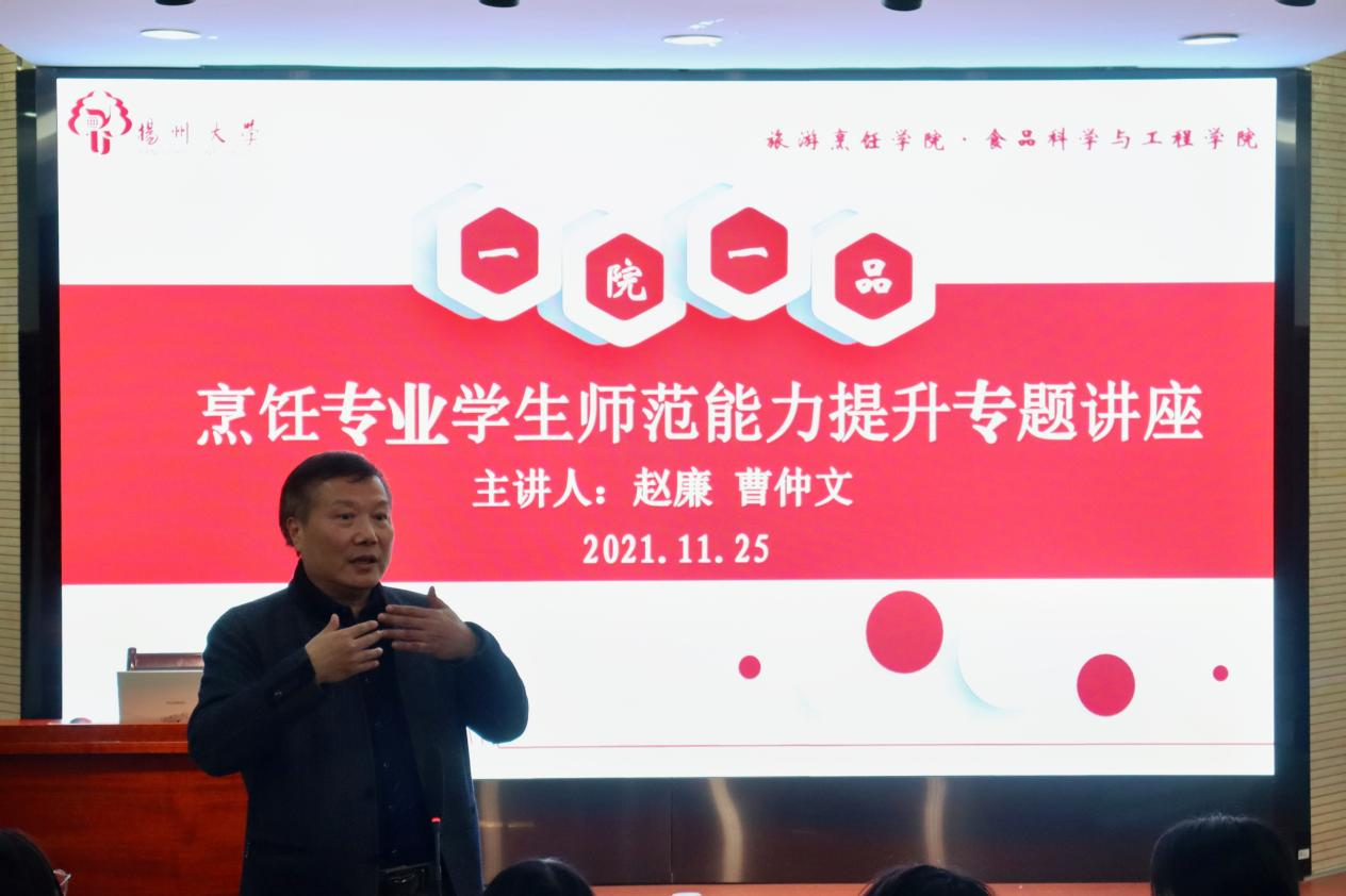 11月25日晚上7点,扬州大学旅游烹饪学院·食品科学与工程学院在笃行楼三楼N302报告厅开展了烹饪专业学生师范能力提升专题讲座。出席本次讲座的有院团委副书记徐华林,烹饪系曹仲文老师、赵廉老师。本次讲座由院团委副书记徐华林主持。