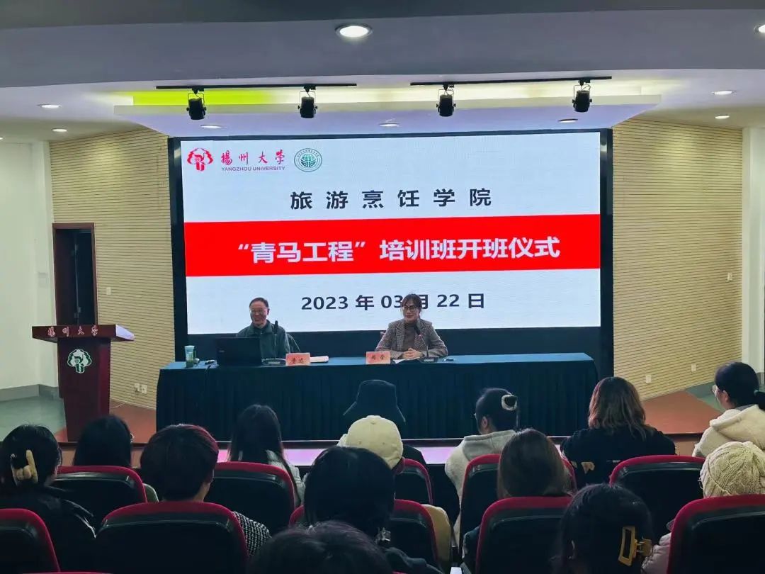 3月22日晚,旅游烹饪学院在笃行楼N302会场举行了2023年“青马工程”培训班开班仪式,邀请校关工委讲师团费迅教授为同学们开讲第一课。全体辅导员,各班级班长团支书,三会三中心主席团、部长团成员参加。本次开班仪式由院党委副书记周莹主持。