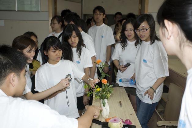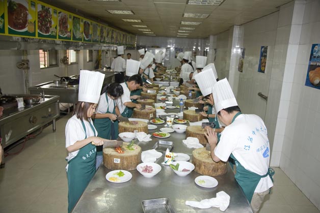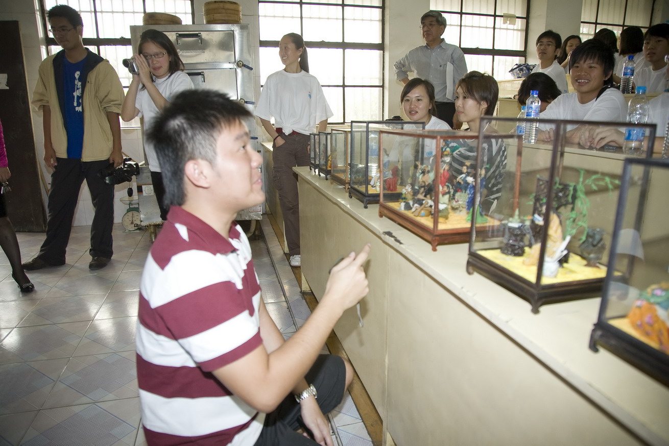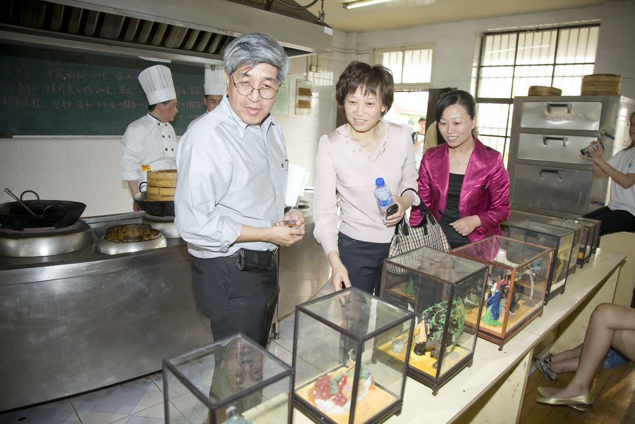 2009年5月18日下午新加坡大学生访问团来我院烹饪专业进行烹饪课堂体验,观摩了烹饪专业师生的面塑和雕刻作品,张建军、朱在勤、唐建华老师现场表演了淮扬菜名菜名点,53名新加坡大学生分为两组,在老师的指导下分别完成了“香菠咕噜肉”和“月牙蒸饺”的制作。