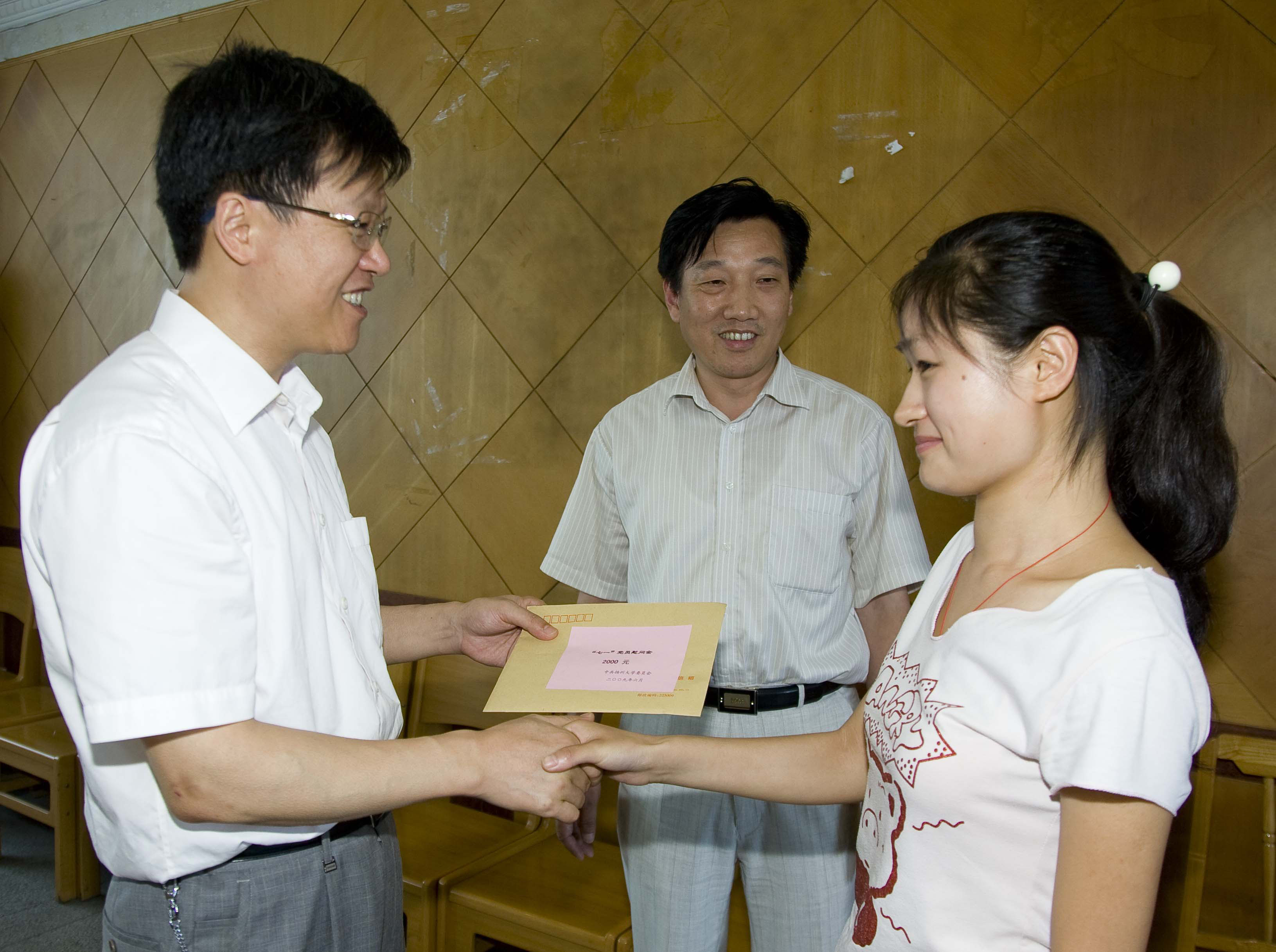 芮鸿岩副校长向杨冬妮同学发放慰问金