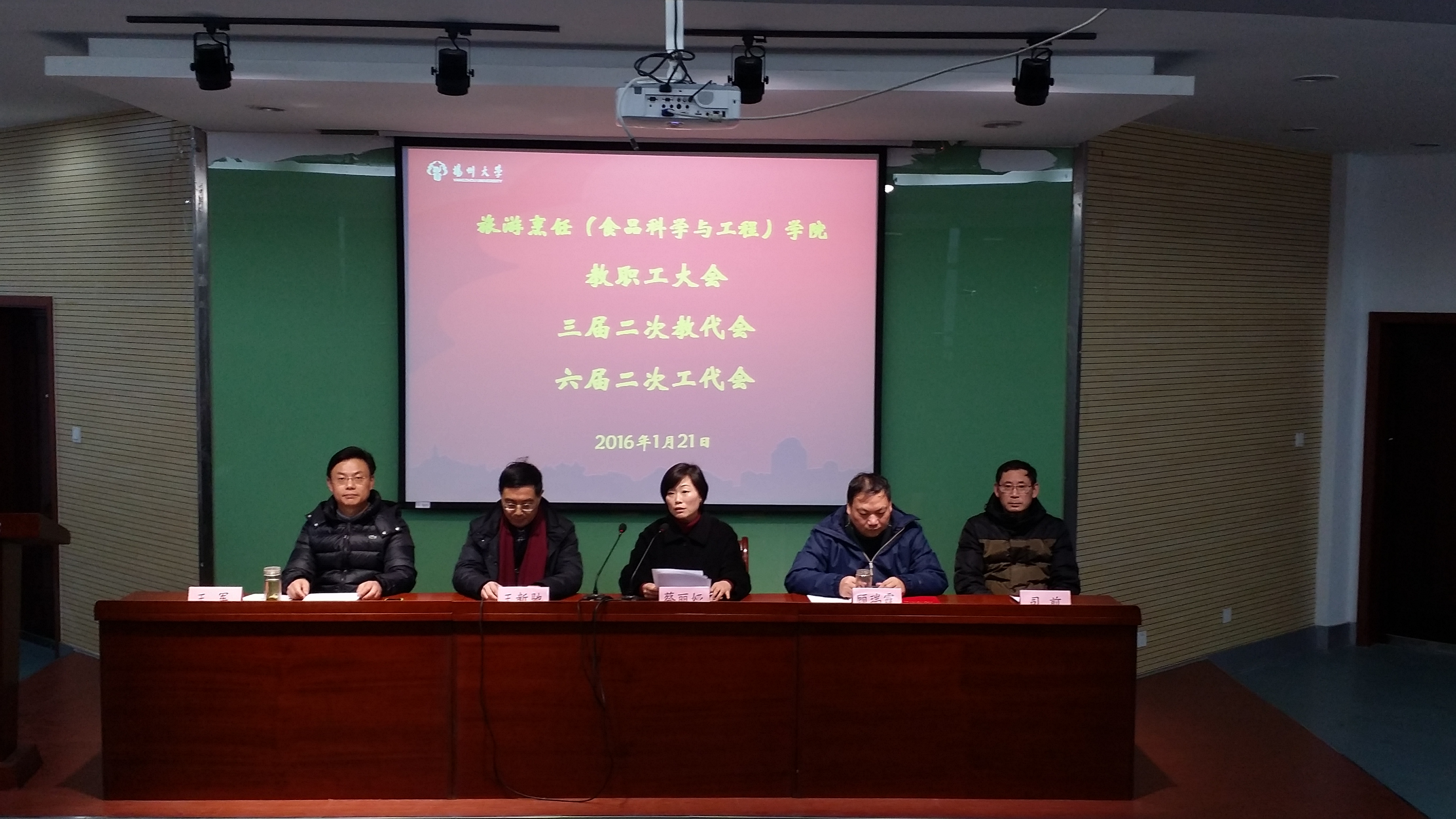 2016年1月21日下午,学院三届二次教职工暨六届二次工会会员代表大会在笃行楼N302报告厅隆重召开。院长王新驰代表学院作题为《 同心协力 深化改革 发奋实干 为建成特色鲜明的高水平学院而不懈奋斗》工作报告;工会主席司前同志代表本届工会作《牢记工会职能 服务中心工作》工会工作报告。党委书记蔡丽娅在大会闭幕式上讲话,希望全院教职工同心协力,深化改革,发奋实干,为建成特色鲜明的高水平学院而不懈奋斗。大会由王军副书记主持。大会在高亢的《团结就是力量》的歌声中胜利闭幕。