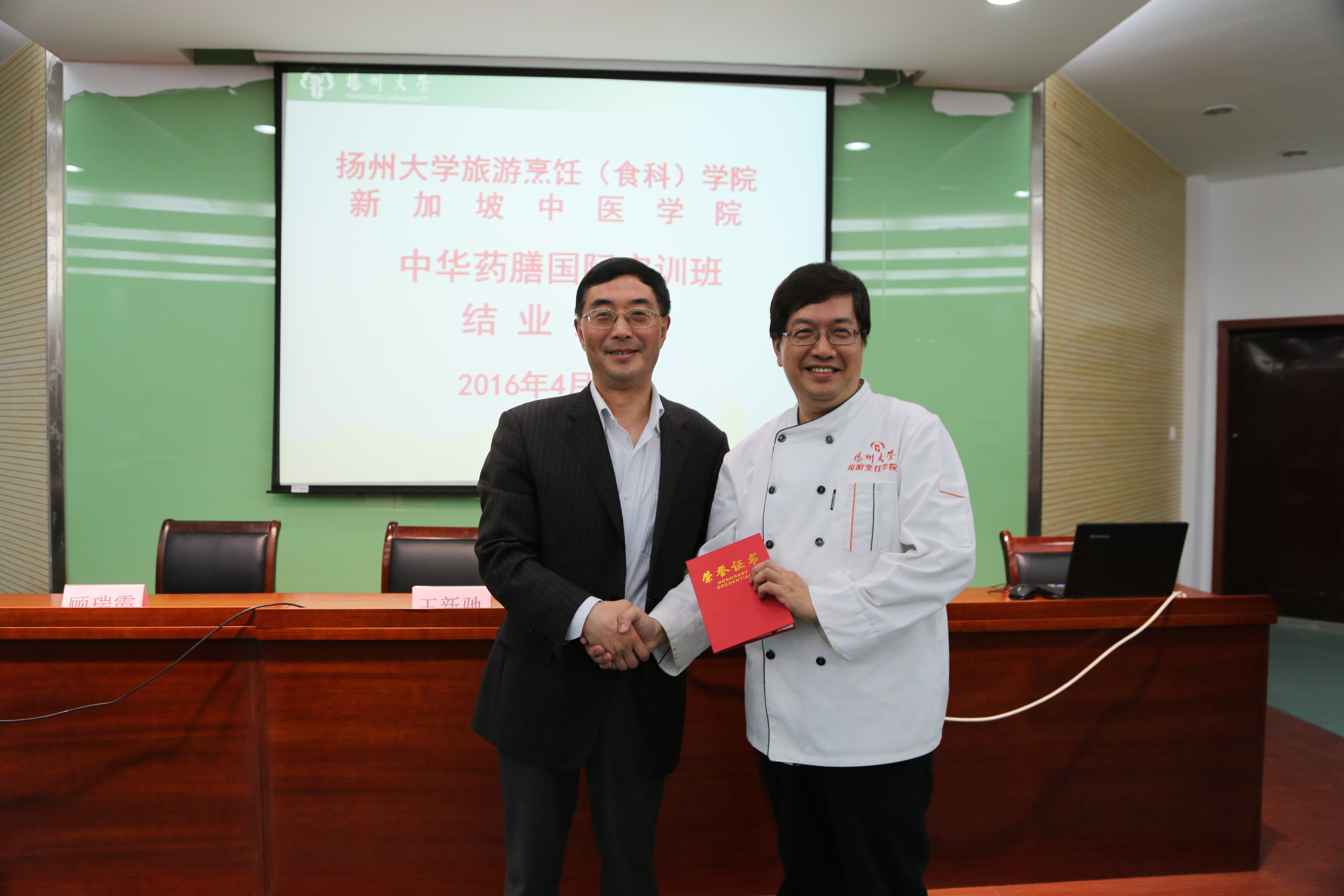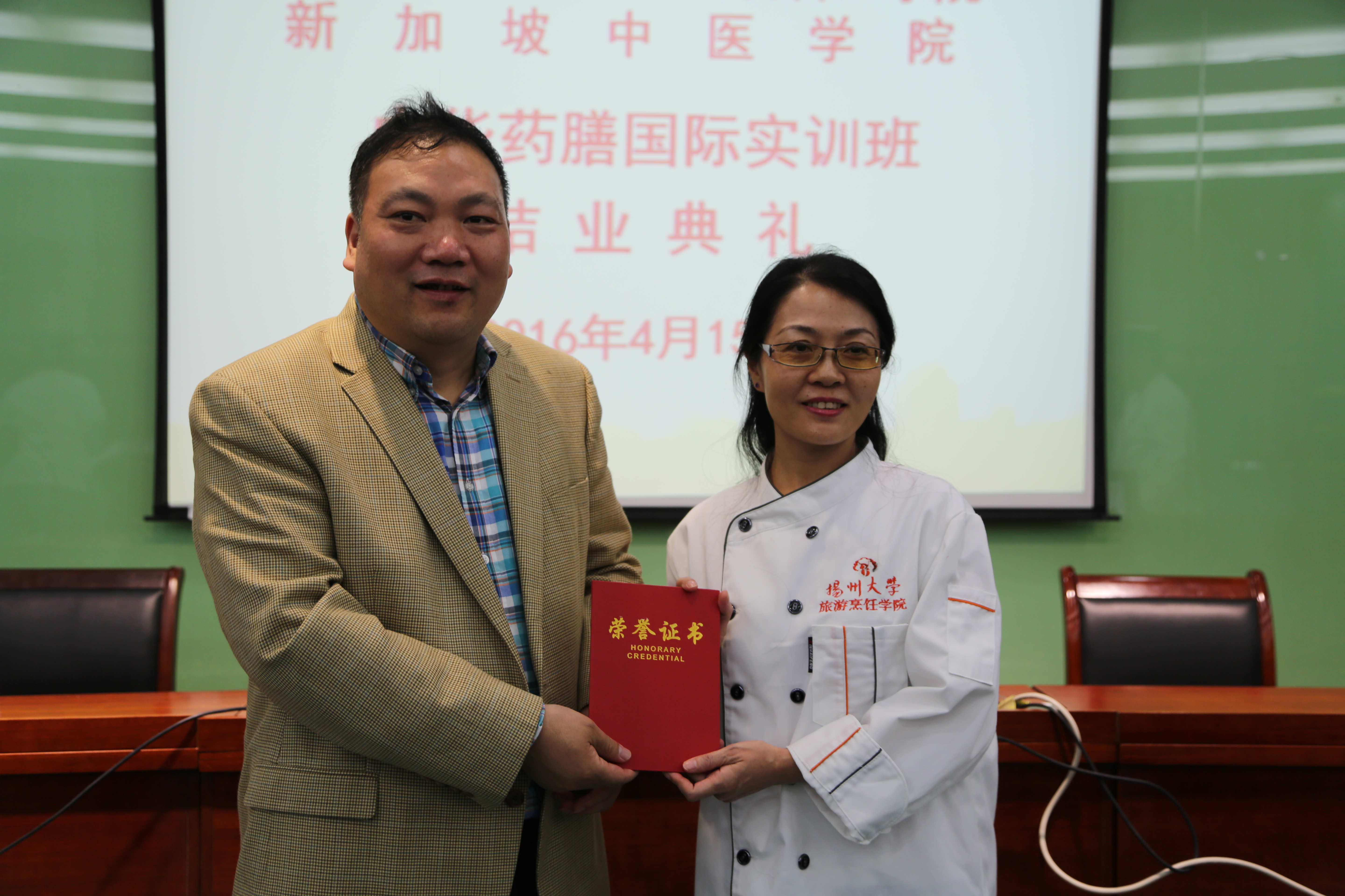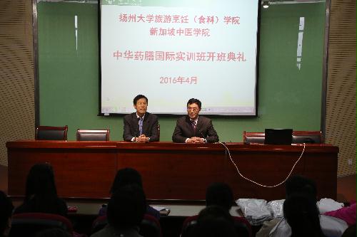 4月8日-15日,受新加坡中医学院的委托,学院举办为期8天的中华药膳国际实训班。来自新加坡中医学院的34位学院参加了培训。刘延庆教授为学员作中医保健专题讲座。