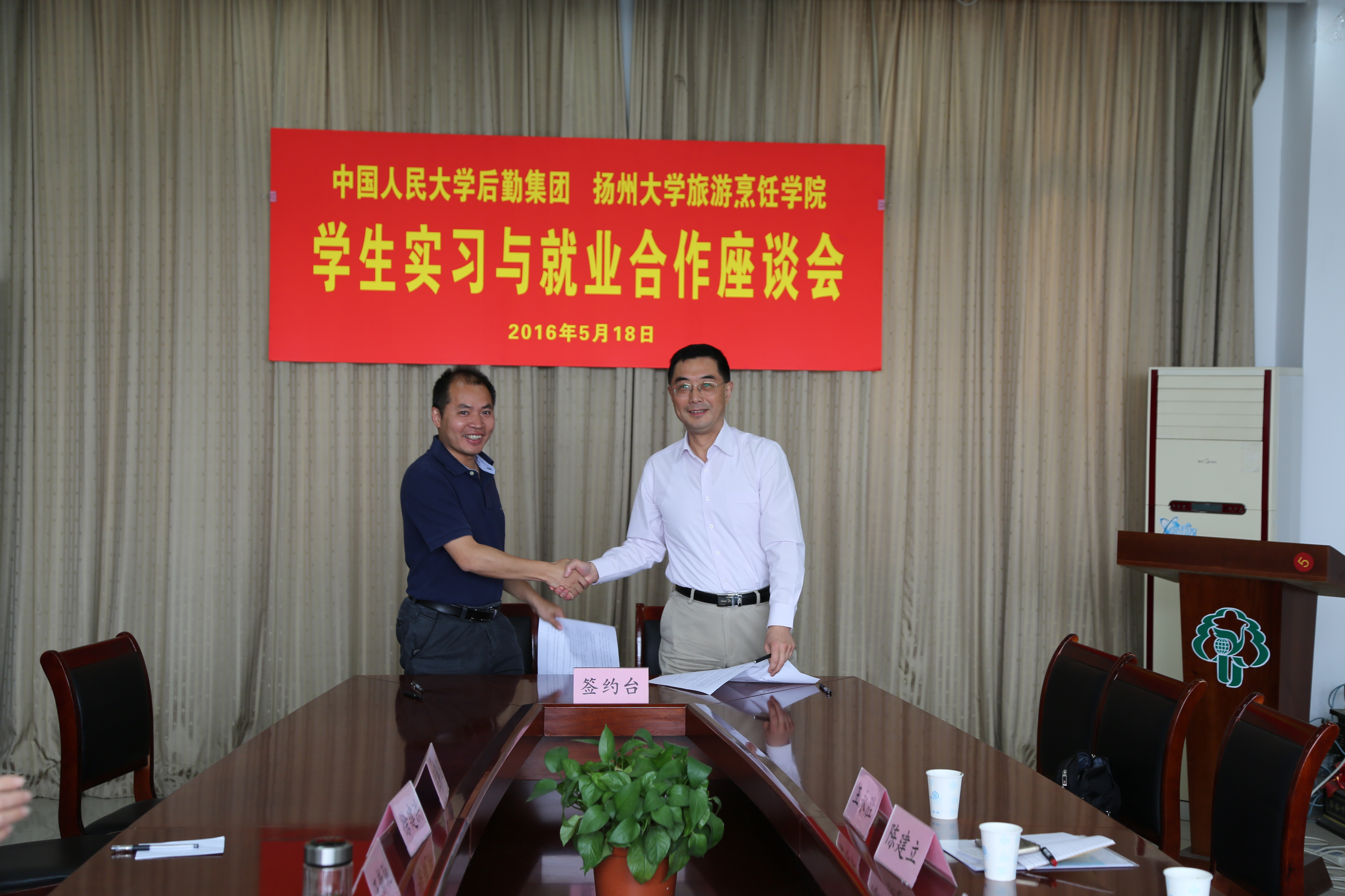 给予中国人民大学后勤集团工作的支持表示感谢。学院党委书记蔡丽娅希望双方能够进一步加强合作,共同促进事业发展。院长王新驰代表学院与中国人民大学后勤集团签署学生实习、就业合作意向书。党委副书记王军、综合办公室负责人、烹饪与营养专业负责人、院团委(学工办)负责人和相关老师参加上述活动。