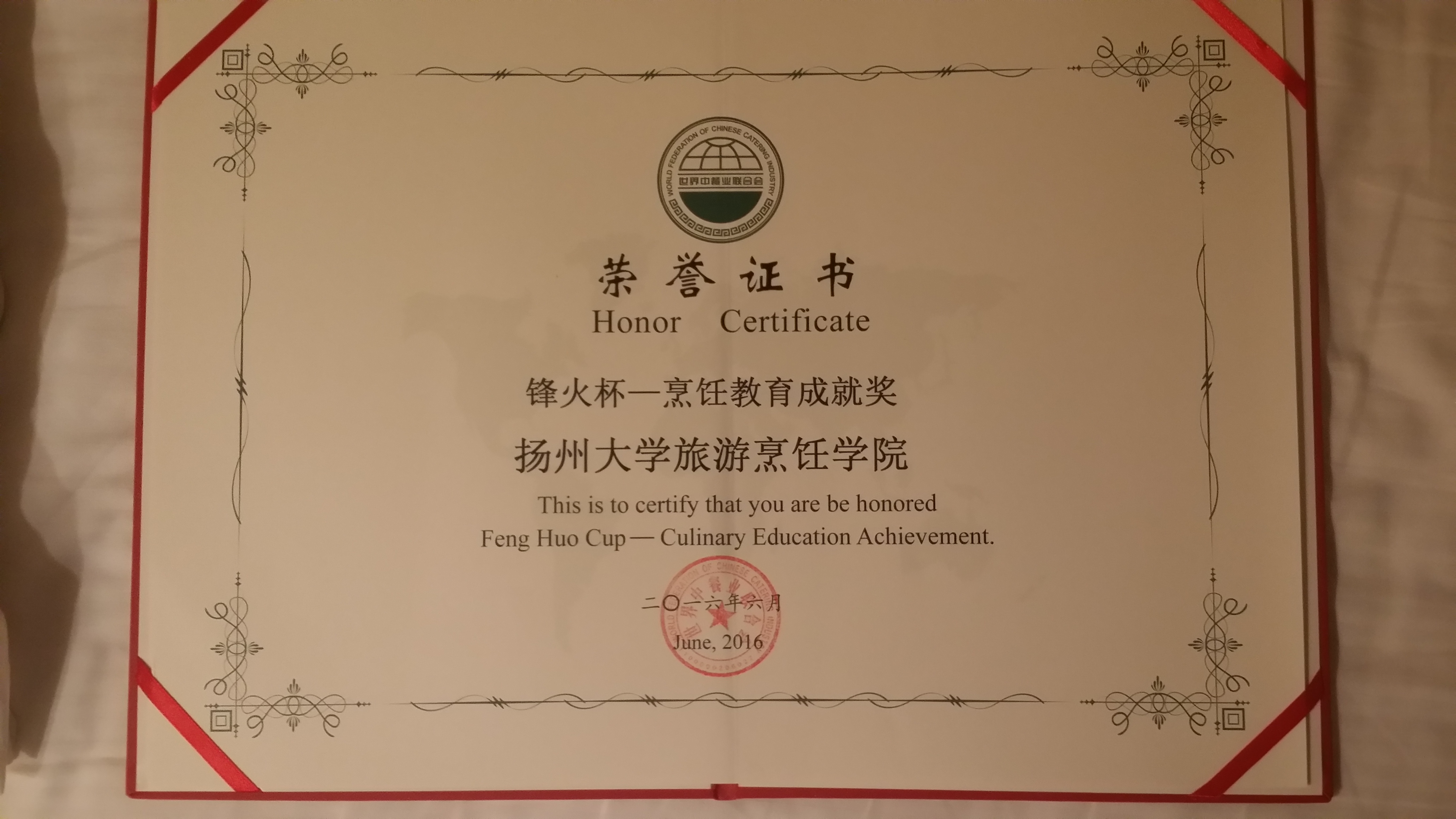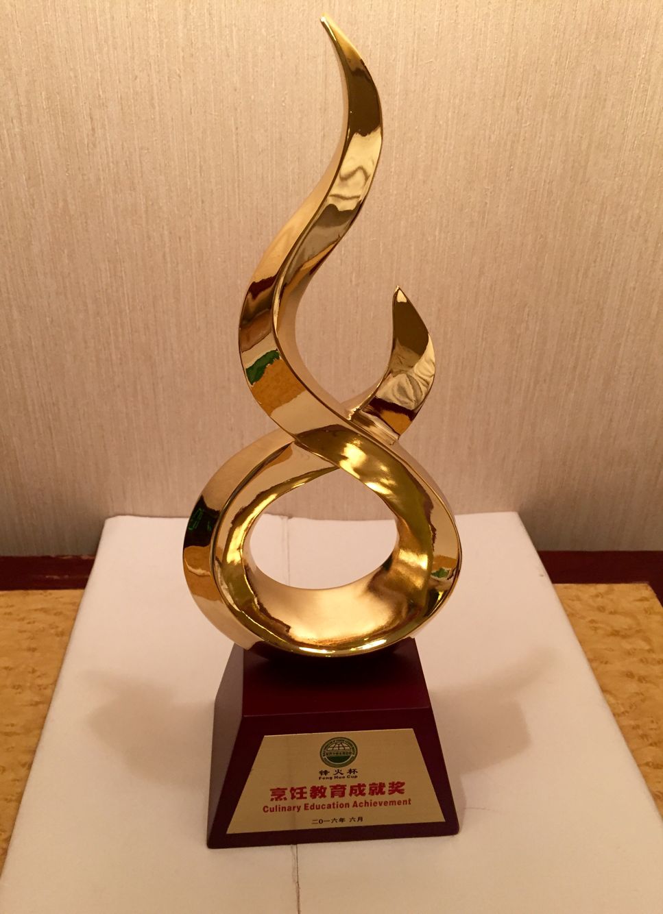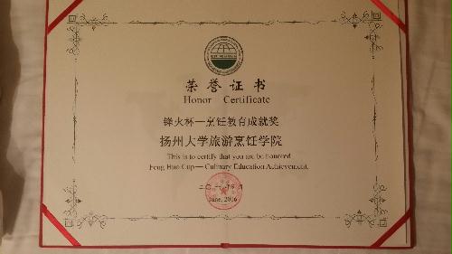 2016年6月26日,全球厨师艺术锋火汇颁奖典礼在北京中国皇家菜博物馆举行。为表彰我院在烹饪教育方面所做出的贡献,世界中餐业联合会授予我院锋火杯-烹饪教育成就奖。