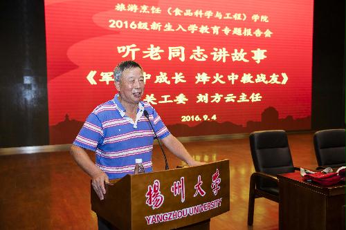会后,刘方云副主任为2016级新生作《军营中成长烽火中救战友》专题讲座,他讲述了如何在军营中一步步成长和自己参加抗美援朝时奋不顾身救战友的故事,告诫同学们要勤俭节约、不要乱花一分钱;要不断学习牢记毛泽东思想、邓小平理论、“三个代表”重要思想和科学发展观,努力使自己成为国家栋梁之才。
