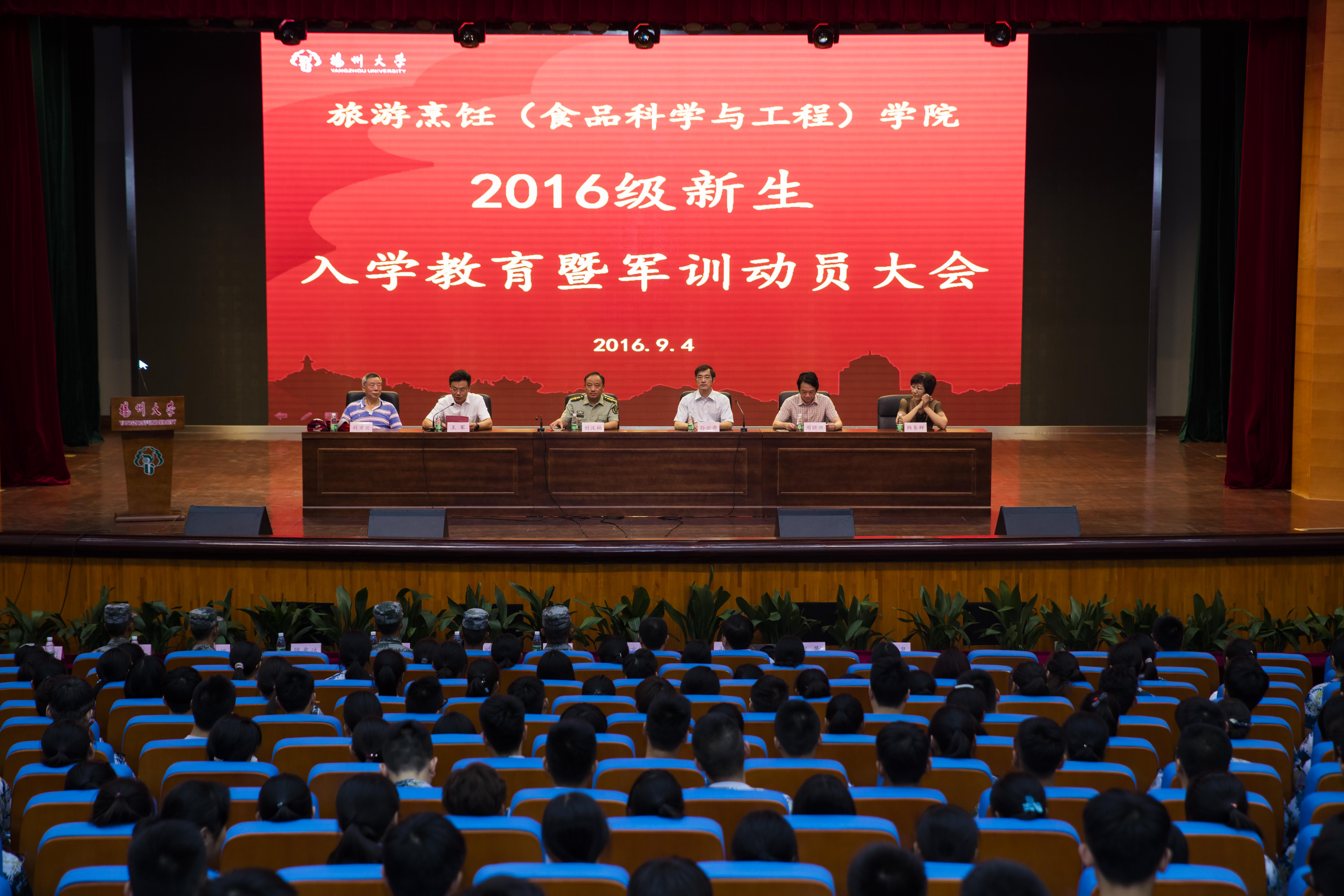 院党委书记孙云寿发表讲话,他告诫同学们大学是人生征途的新阶段,是追寻梦想的新起点, “工欲善其事,必先利其器”,向2016级全体新生提出了“主动适应”、“勤学多思”、“学会做人”、“学会发展”四个方面的建议,希望同学们能在旅游烹饪(食品科学与工程)学院度过快乐而又充实的四年。