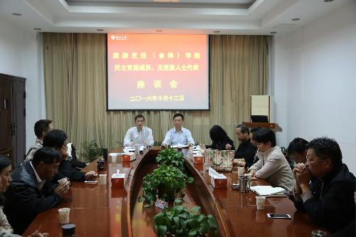 10月12日下午,学院各民主党派及无党派代表人士座谈会在笃行楼三楼会议室召开,党委书记孙云寿、党委副书记王军与各民主党派及无党派代表人士进行了深入的交流和探讨。