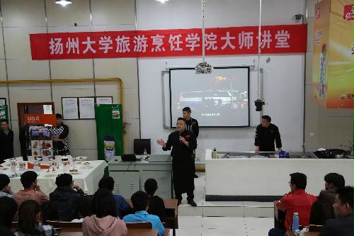 仪式上,孙云寿发表讲话并宣布烹饪大师讲堂正式开始。孙云寿指出,本次举行的“兼职教授”“双导师制”聘任和“大师讲堂”的举办,对于形成全程育人,全方位育人和校企共育氛围有着非常重要的现实意义和深远的历史意义。