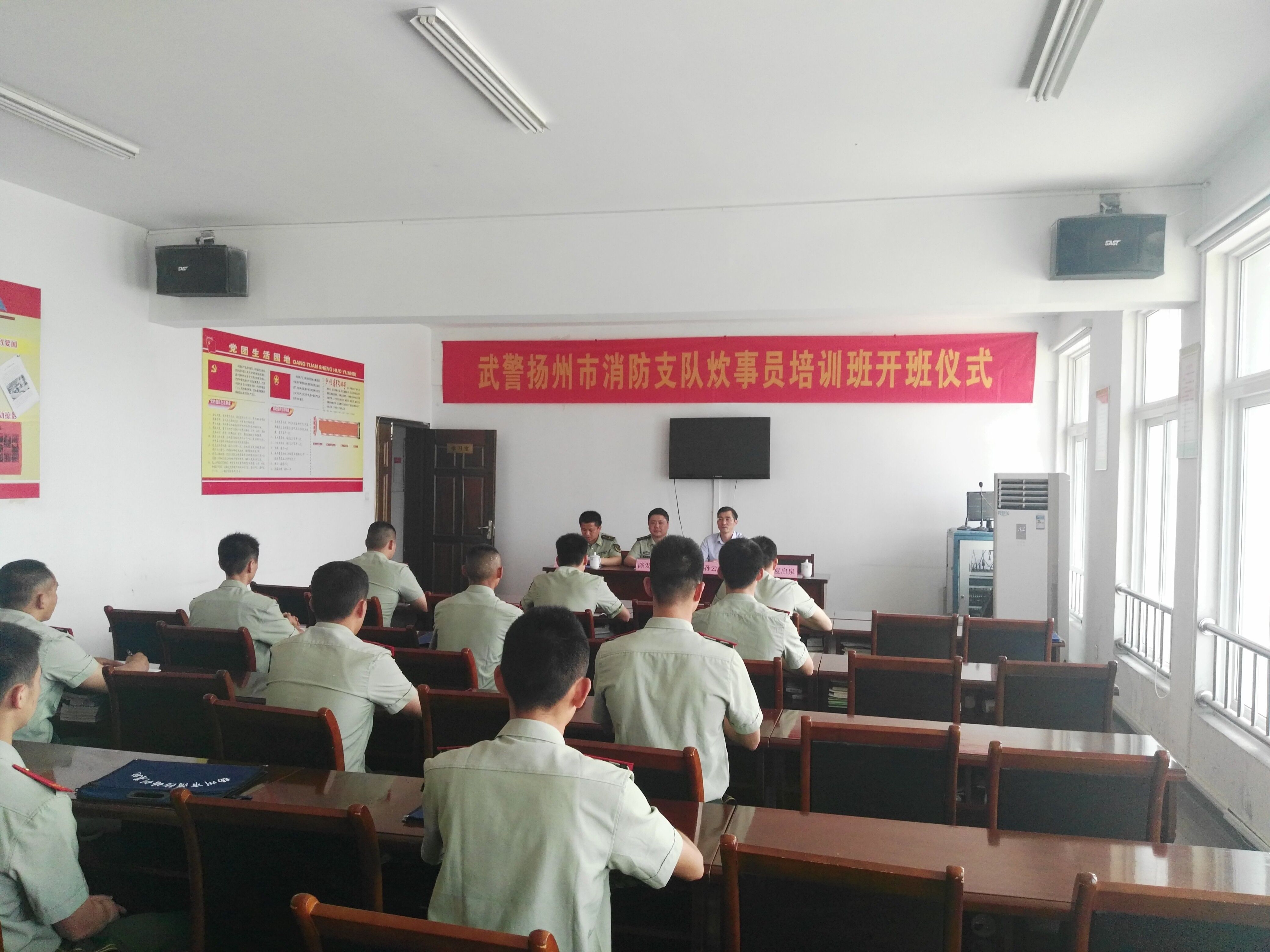 我院为武警扬州消防支队举办的炊事员培训班5月22日下午举办开班典礼。院党委书记孙云寿、扬州消防支队后勤处处长陈发斌出席,院继续教育办公室负责人、消防支队后勤处军需装备科负责人、全体参训官兵参加活动。