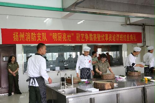 5月22日开班的首届扬州市消防支队炊事员培训班,经过22天的培训,于6月12日圆满完成培训任务,举办结业典礼。学院党委书记孙云寿、副书记王军以及消防支队支队长王志祥、副政委汪同春参加活动。