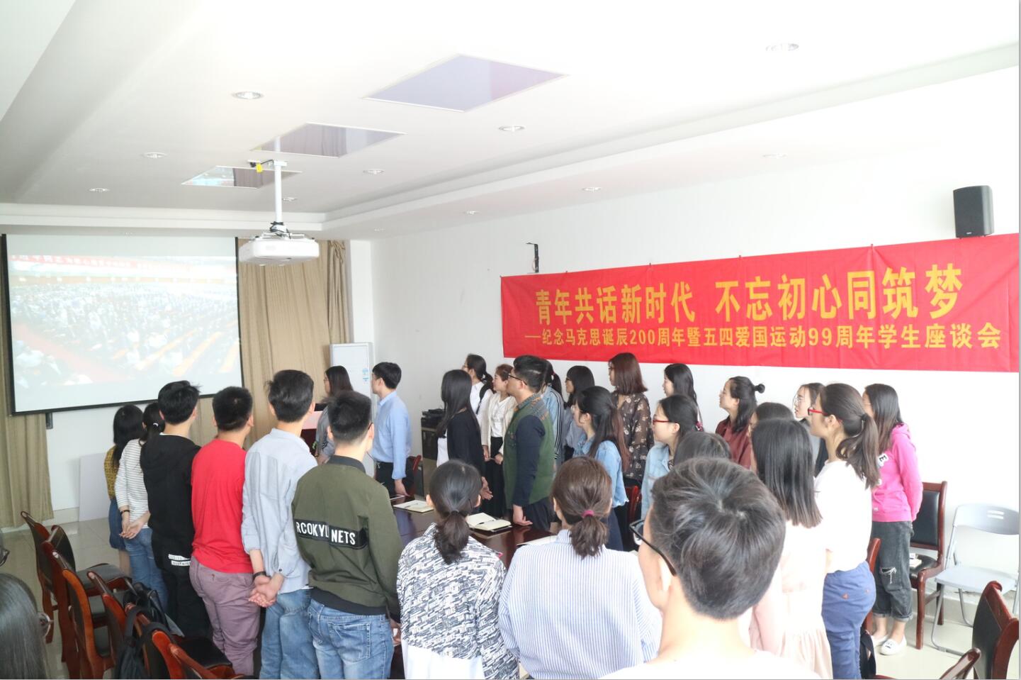 5月4日上午10时,纪念马克思诞辰200周年大会在北京人民大会堂举行,中共中央总书记、国家主席、中央军委主席习近平出席大会并发表重要讲话。与此同时,旅游烹饪·食品科学与工程学院全体团委老师以及学生党员代表在笃行楼SM201收看了此次大会直播。