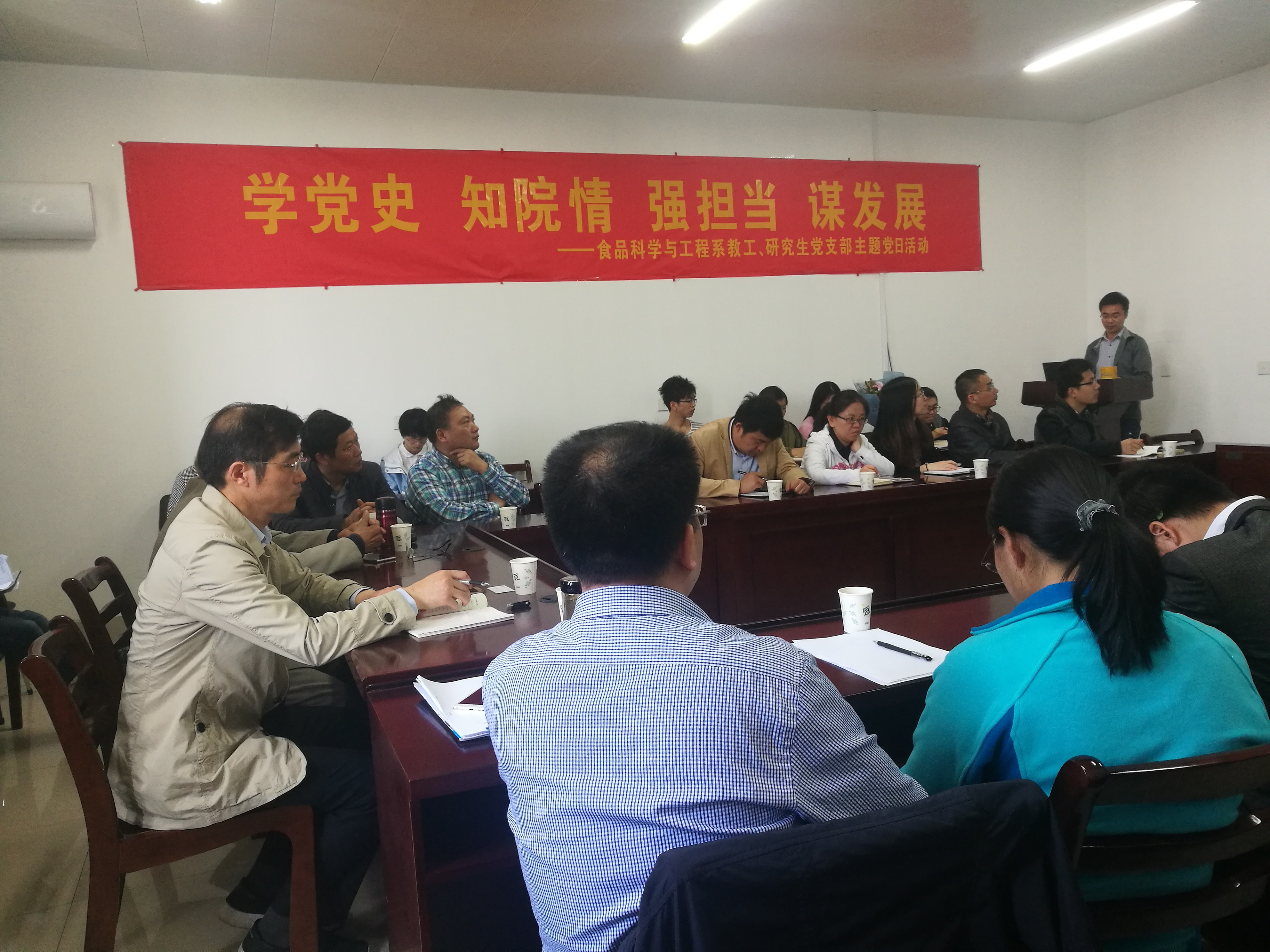 活动上,党员们首先观看了新华社微视频《真的光芒》,重温了马克思主义的诞生和中国共产党的发展历史。随后,食品科学与工程专业退休党员王阳春老师介绍专业的成立和发展历史,系主任饶胜其老师介绍专业发展现况。全体党员认真聆听并积极参与讨论,分别从研究生和教工党员角度剖析自身对学科专业未来发展应有的责任与担当。最后,孙云寿书记对活动做总结发言。孙书记强调,党员同志在专业发展过程中要起到先锋模范作用,要有危机感、责任感和使命感;全体师生要利用一级学科博士点建设的契机,为实现食科专业的快速发展、为高水平研究型大学建设、为实现中华民族伟大复兴的中国梦贡献自己的力量。