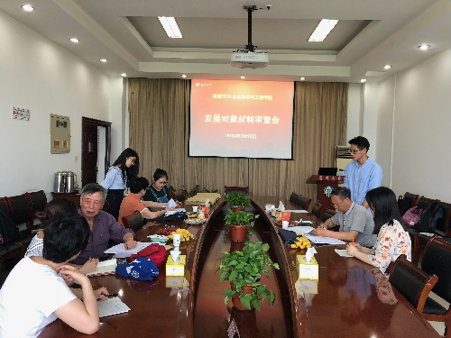 5月16日下午三点,旅游烹饪食品学院党委在笃行楼三楼会议室召开发展对象材料审查会。校关工委办公室副主任刘方云、盐阜路校区离退休党总支书记骆华、老同志于耀青老师对2018年上半年26位拟发展对象的入党材料进行了严格审查。学生党支部全体支委、发展对象参加评审会。