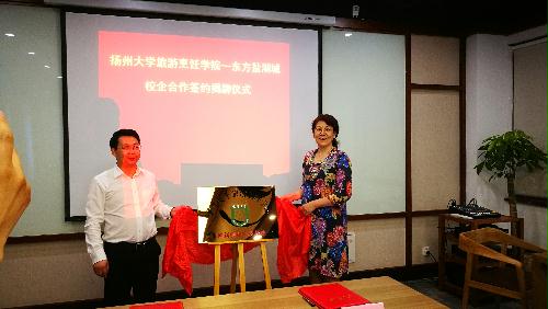 为了拓宽我院学生的实习实践平台,有利于提高人才培养质量,5月16日,学院副院长韩春鲜赴常州东方盐湖城旅游发展有限公司,进行校企合作创新创业基地签约授牌。韩春鲜与东方盐湖城旅游发展有限公司叶明副总经理签署了合作协议,同时就进一步深化校企之间的合作,发挥好各自优势,拓宽合作空间,推动协同创新,景区经营发展中美食文化与道教文化的融合创新、旅游新产品的设计与开发、人才发展计划中本科储备干部的培养等话题进行了深入地探讨。