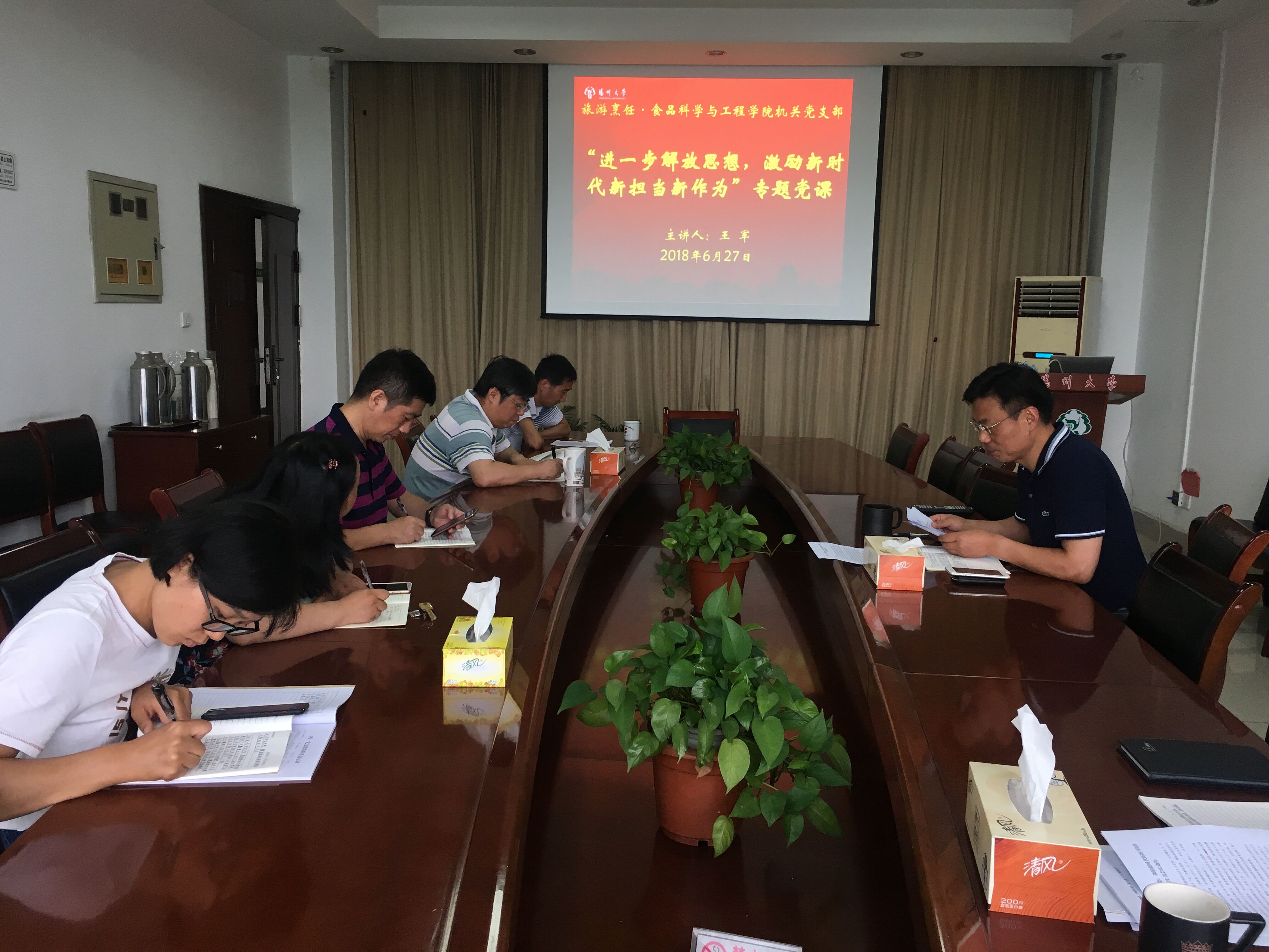 院党委书记孙云寿参加了食品科学与工程系教工党支部专题组织生活会,以《把握新时代新要求谋求新担当新作为》为主题做党课。孙书记指出,党员要提高政治站位,增强政治责任感和使命感;要贯彻落实新发展理念,推动学院高质量发展;要不忘初心,时刻保持奋斗的精神状态和工作姿态。孙书记强调,全体党员要以永不懈怠的精神状态和一往无前的奋斗姿态,忠诚履责、尽心尽责、勇于担责,为扬州大学早日建成高水平研究型综合性大学而努力奋斗。