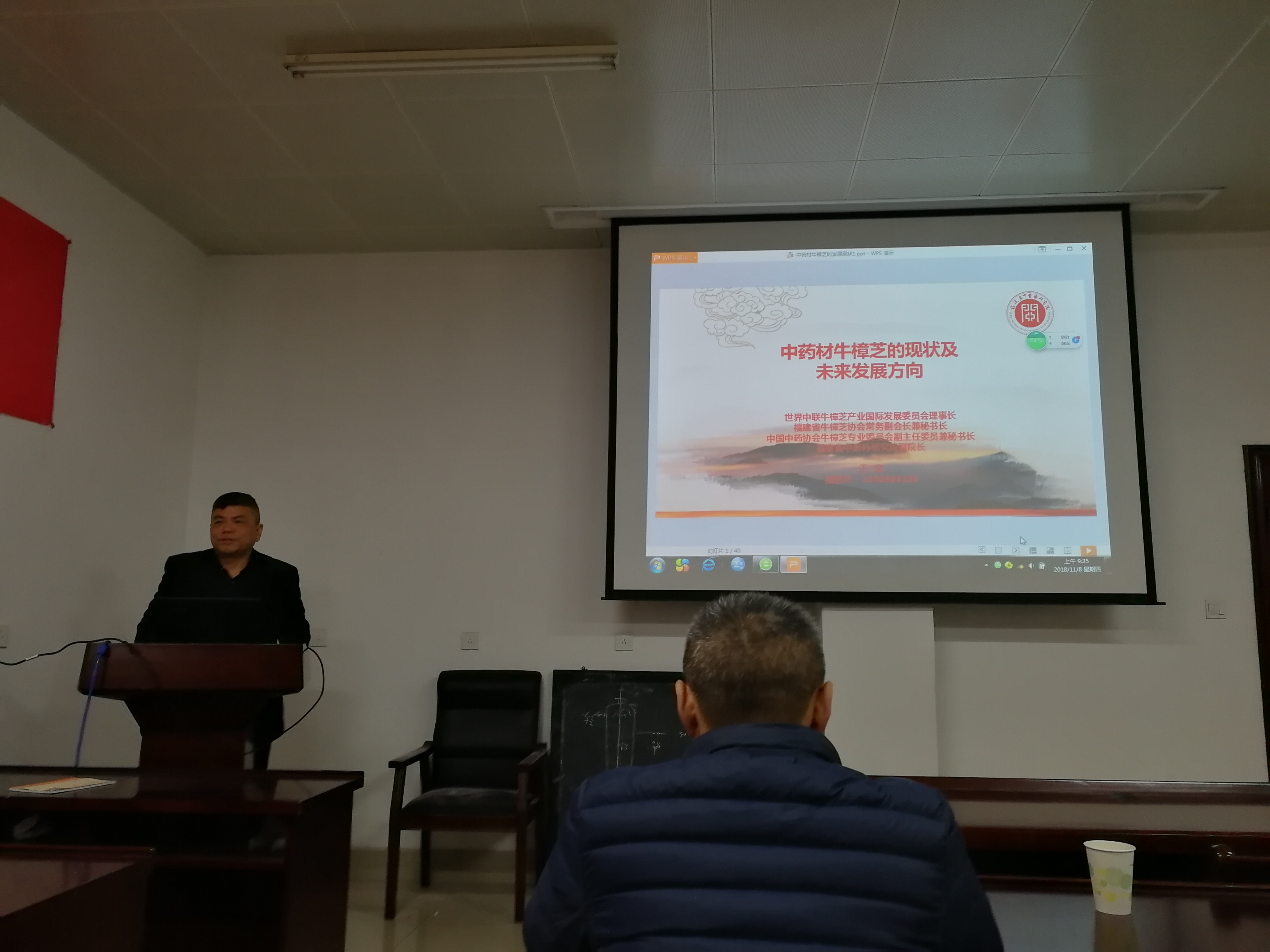 11月8日,福建省中医药研究院副院长王宫研究员、杨义雄副研究员应邀来我院进行学术交流。王宫为我院师生作了题为“中药材牛樟芝的现状及未来发展方向”的学术报告,报告详细介绍了特有珍稀药食用真菌牛樟芝的命名、功效、栽培、产品、研究进展及未来应用方向。