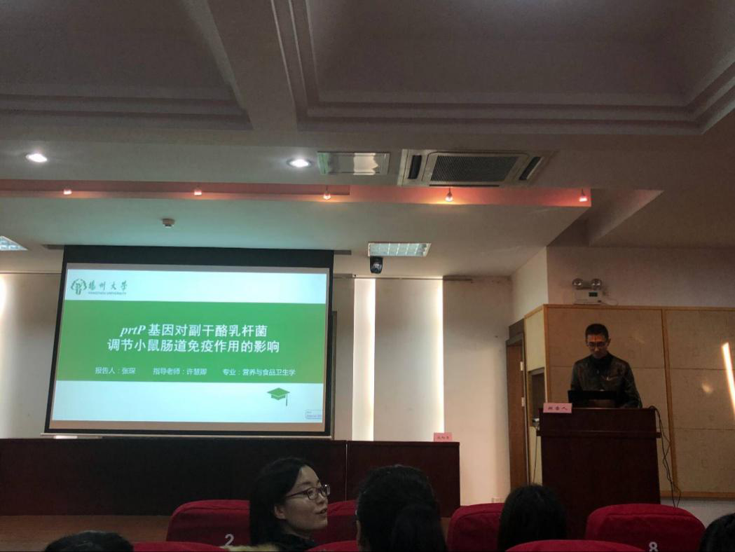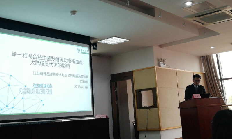 本次论坛分为“食品营养科学与健康”、“食品安全与质量控制”和“食品加工与智能制造”等三个专题,来自全国三十多所高校的研究生参加了此次交流。我院博士生瓦云超和硕士生张琛分别作了题为“单一益生菌和复合益生菌发酵乳对高脂血症大鼠脂质代谢的影响”和“prtP基因对副干酪乳杆菌调节小鼠肠道免疫作用的影响”的报告,硕士生胡舰、李波、屠明亮、胡乔迁、杨丹、陈胜姝、邵俊峰、用慧敏、郭娟、谢静等就“烹饪加工工艺的优化”、“加工方式及条件对烹饪原料品质的影响”、“淀粉结构表征和理化性质”、“食品添加剂检测分析方法”等方面进行了墙报交流。
