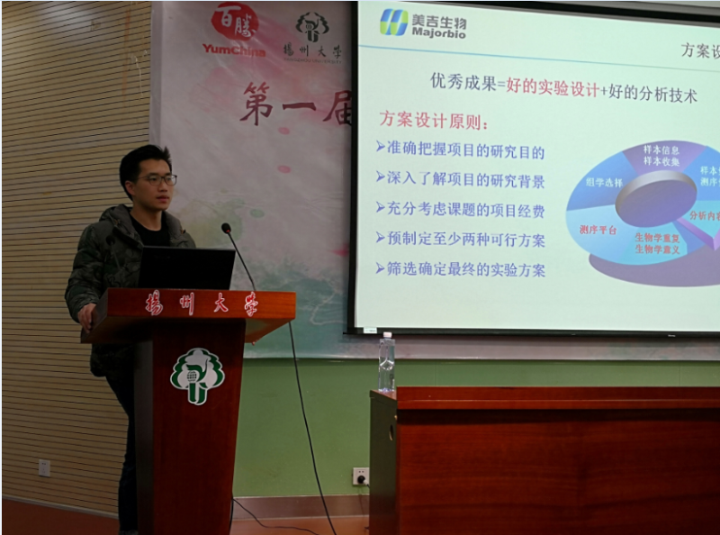 12月20日,上海美吉生物医药科技有限公司微生态事业部产品经理、高级工程于昊天博士应邀来我院进行学术交流。于昊天博士为我院师生作了题为“高通量测序技术应用及重点分析解读”的学术报告,主要介绍了微生态研究前沿、食品微生态、微生态组学分析,重点介绍了高通量测序技术应用,并从研究思路、研究方法进行了相关案例分析。于昊天博士基于高通量测序技术的应用从取样方法、样品提取、方案设计、注意事项等方面给予了微生态实验的建议指导。