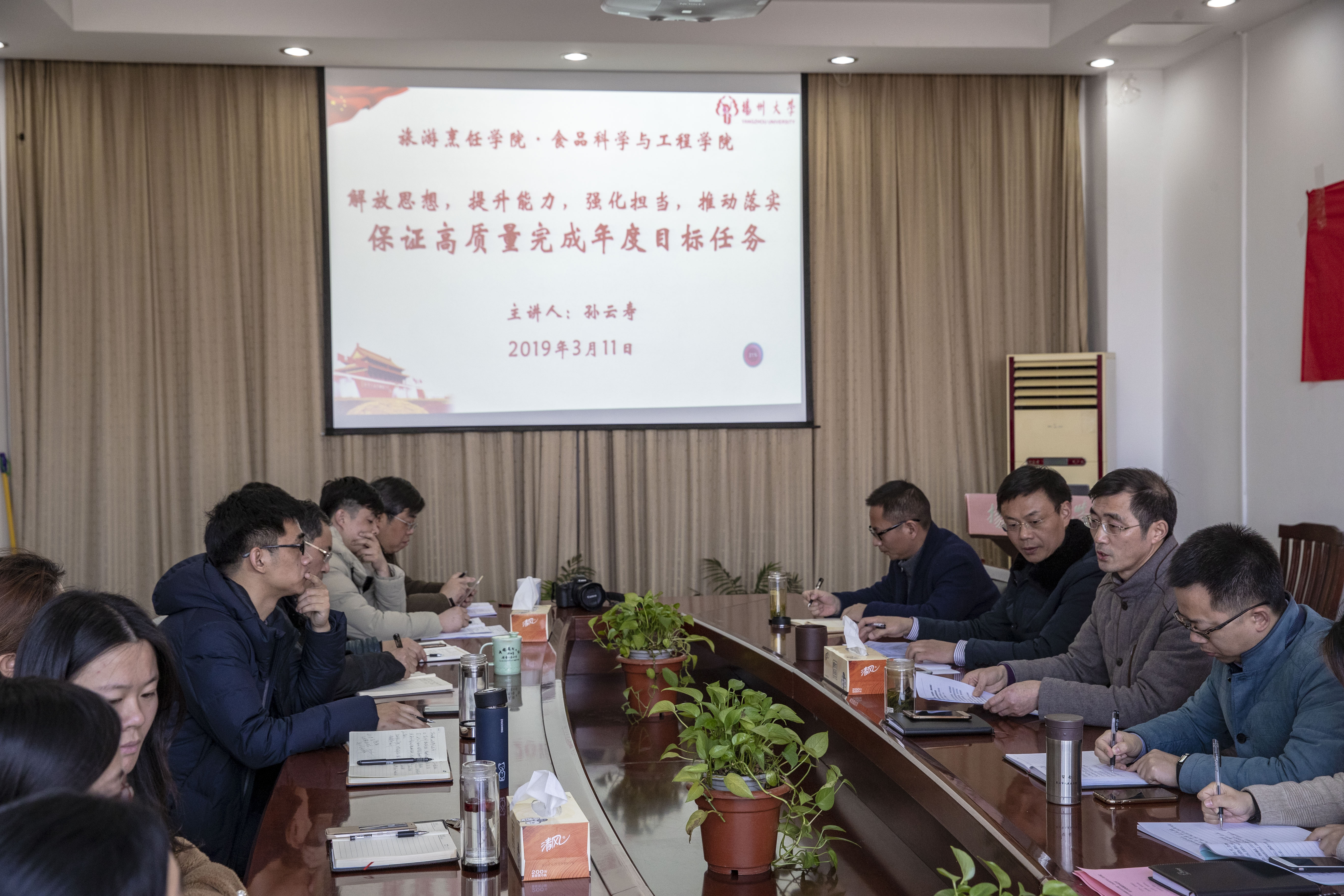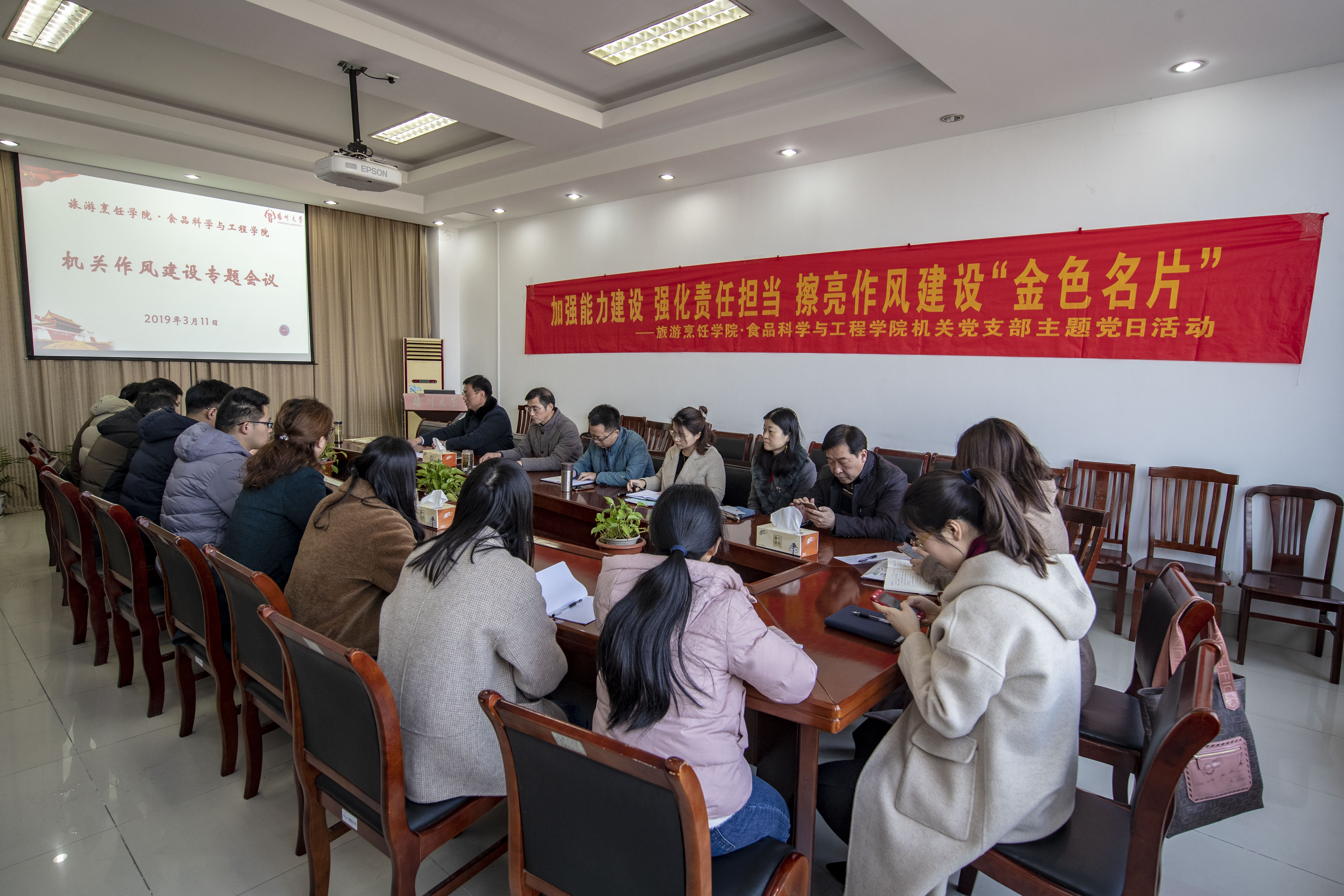 3月11日下午,学院在笃行楼三楼会议室召开机关作风建设专题会议。在扬院领导出席会议,会议由院党委副书记王军主持,全体机关教职工参加会议。