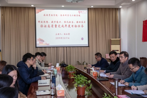 院党委书记孙云寿作《解放思想,提升能力,强化担当,推动落实,保证高质量完成年度目标任务》的主题讲话。孙云寿指出,2018年度学院获得综合奖名列全校第三名,学院党委述职考评获得优秀,机关作风建设持续向好,这些成绩凝聚着广大师生员工的辛勤劳动和汗水。2019年工作目标已经明确,孙云寿对全体机关教职工提出四点要求:一是要解放思想,勇于创新;二是要提高履职能力和工作水平;三是要强化作风建设,激发担当作为;四是要坚持问题导向,实施精准管理,在实现学院高质量发展中贡献力量。