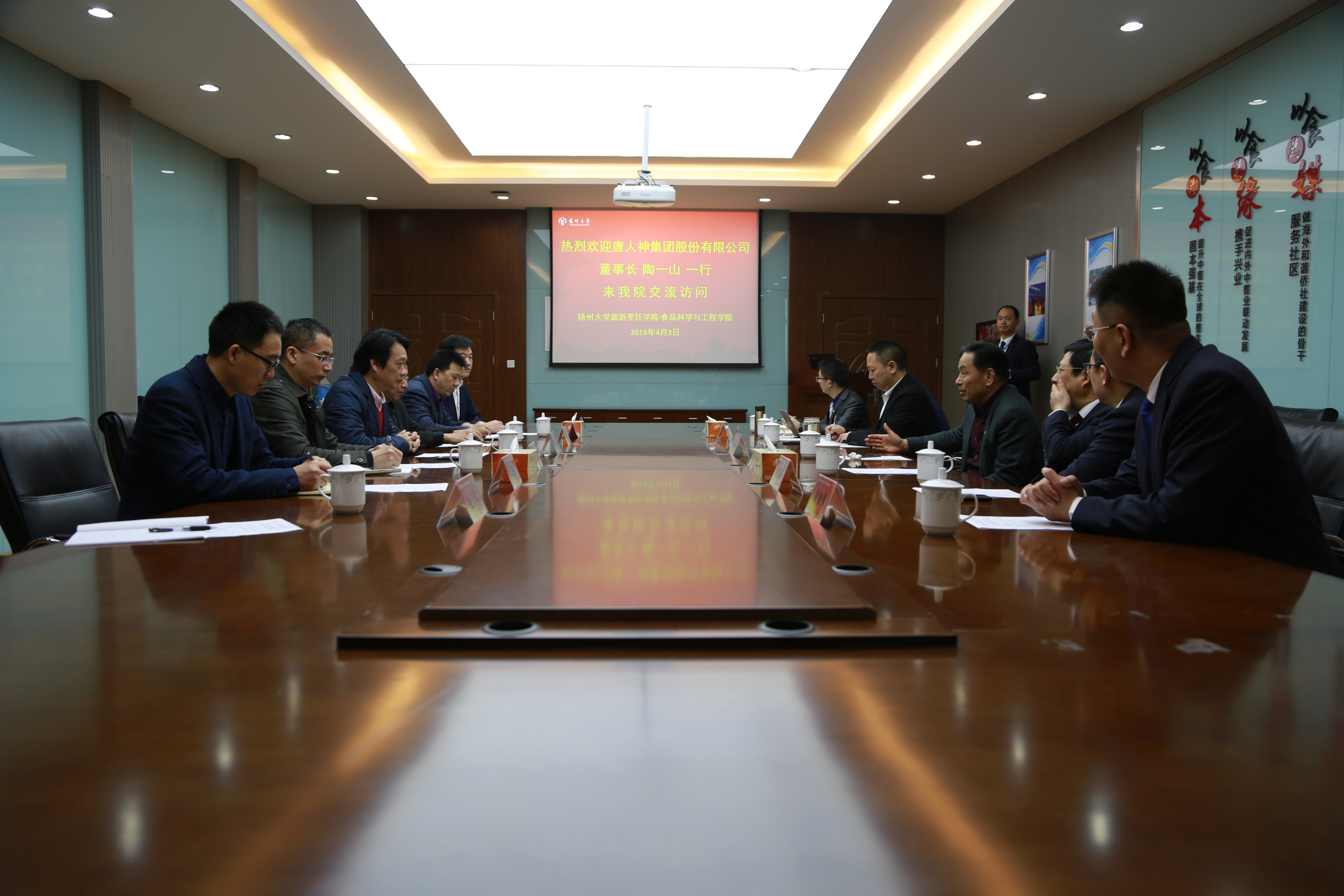 4月2日,湖南唐人神集团股份有限公司董事长陶一山、丰尚农牧装备有限公司董事长范天铭一行访问学院。在参观了烹饪实验室和学生的烹饪技艺表演后,同院长周晓燕就烹饪工艺标准化、工业化进行了深入广泛的交流,并就双方的合作达成初步意向。