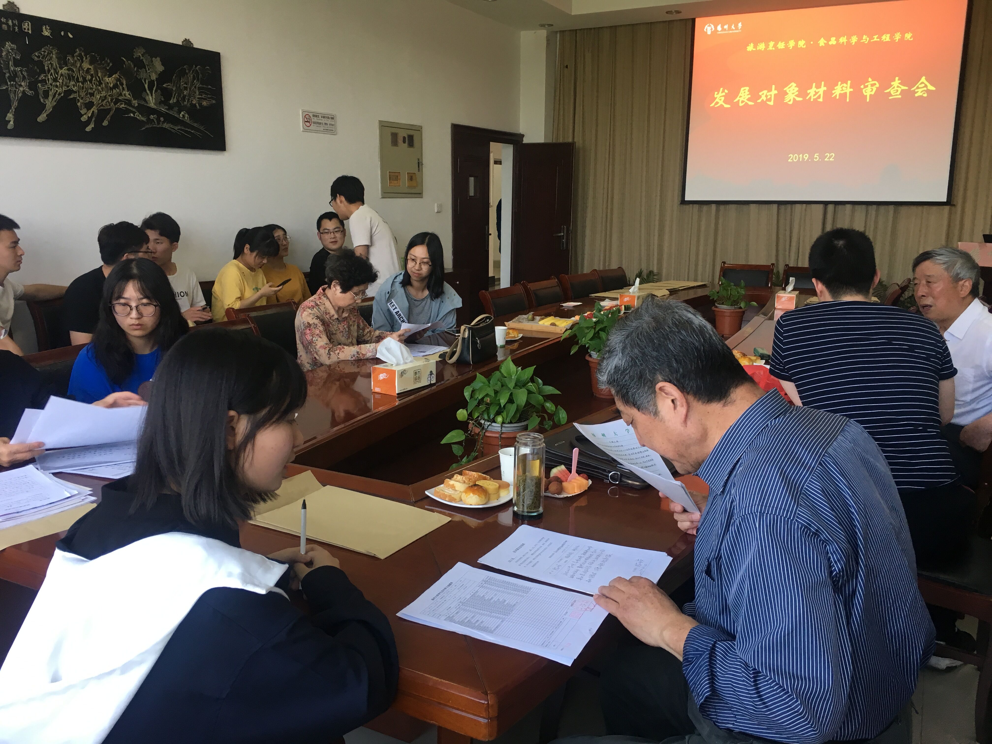 5月22日下午,学院党委在笃行楼三楼会议室召开发展对象材料审查会。校关工委办公室副主任刘方云、盐阜路离退休党总支于耀青、董福祥、赵海粟等四位老同志对我院2019年上半年36名拟发展对象的入党材料进行严格审查。学院组织员、学生党支部全体支委和拟发展对象参加评审会。
