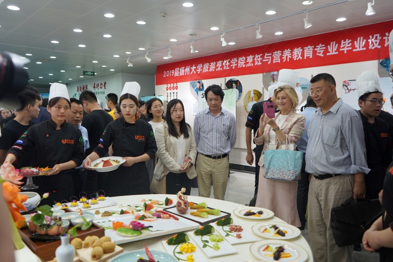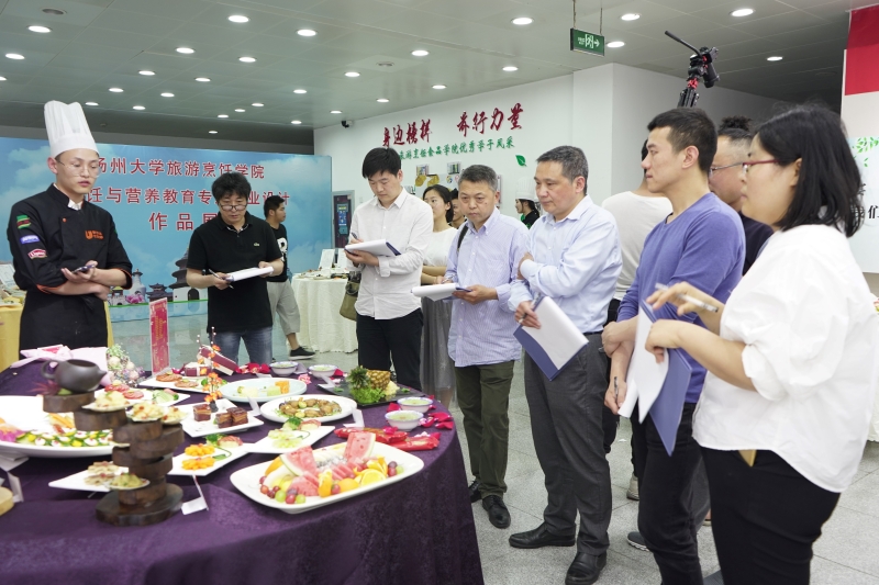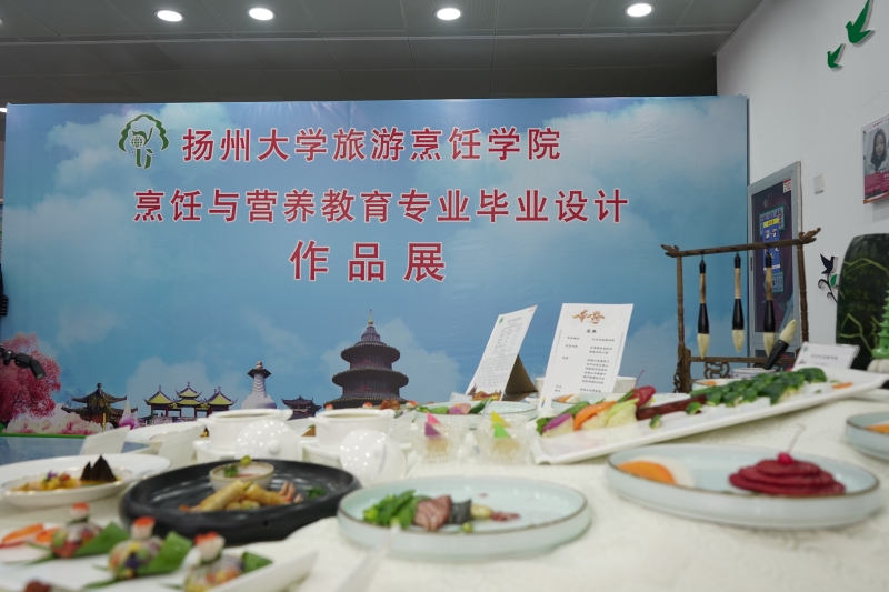 6月1-2日,2015级烹饪与营养教育专业毕业设计成果展在扬州大学海外惠侨工程中餐繁荣基地大厅顺利举行。2015级126名学生以16桌创意新颖的淮扬菜宴席设计作品,向老师和同学们展示了他们大学四年的学习成果。