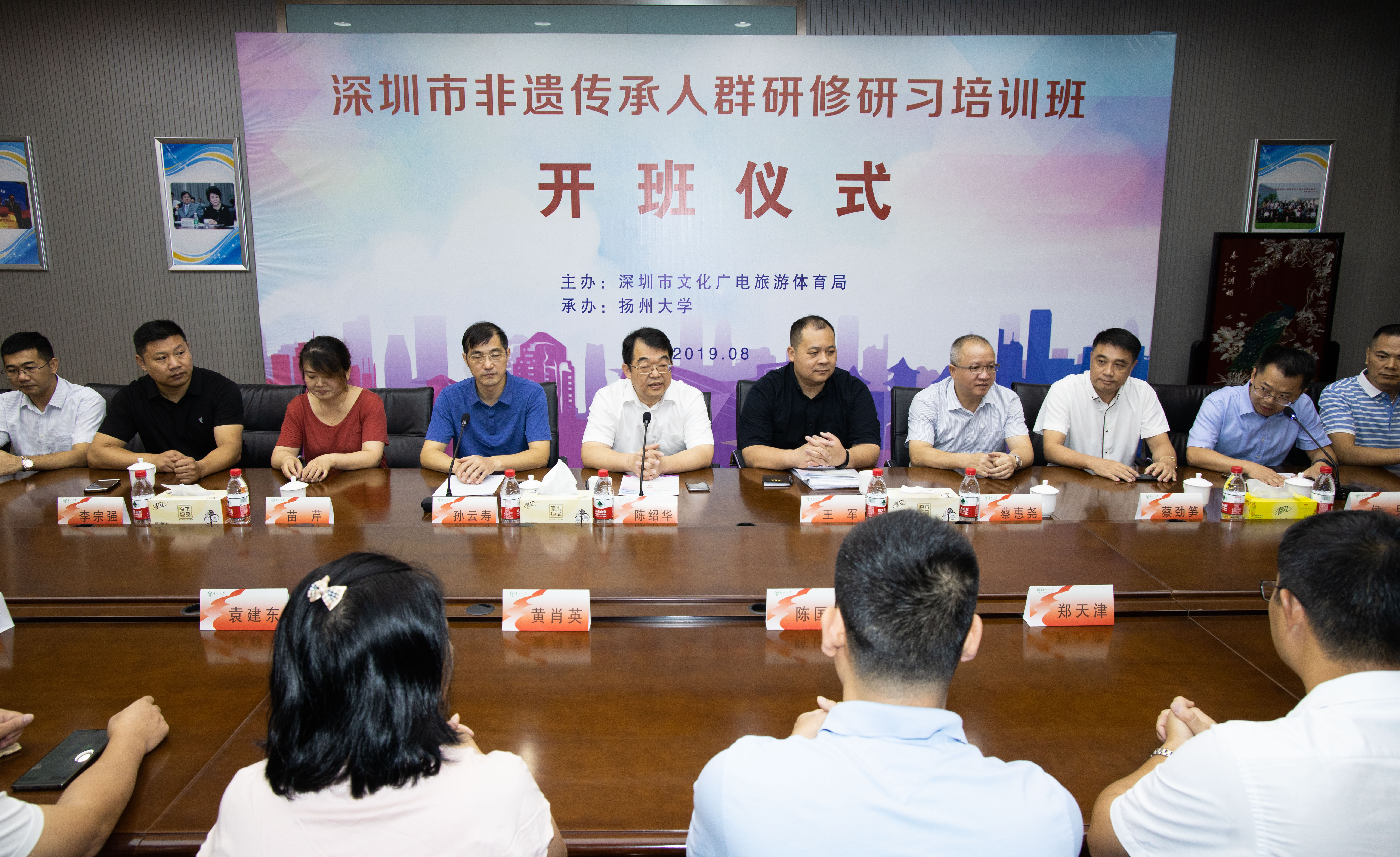 8月11日,由深圳市文化广电旅游体育局主办,我院承办的深圳市非遗传承人群研修研习培训班开班仪式在中餐繁荣基地会议室举行。深圳市文化广电旅游体育局副局长陈绍华、院党委书记孙云寿出席活动,仪式由副院长侯兵主持。