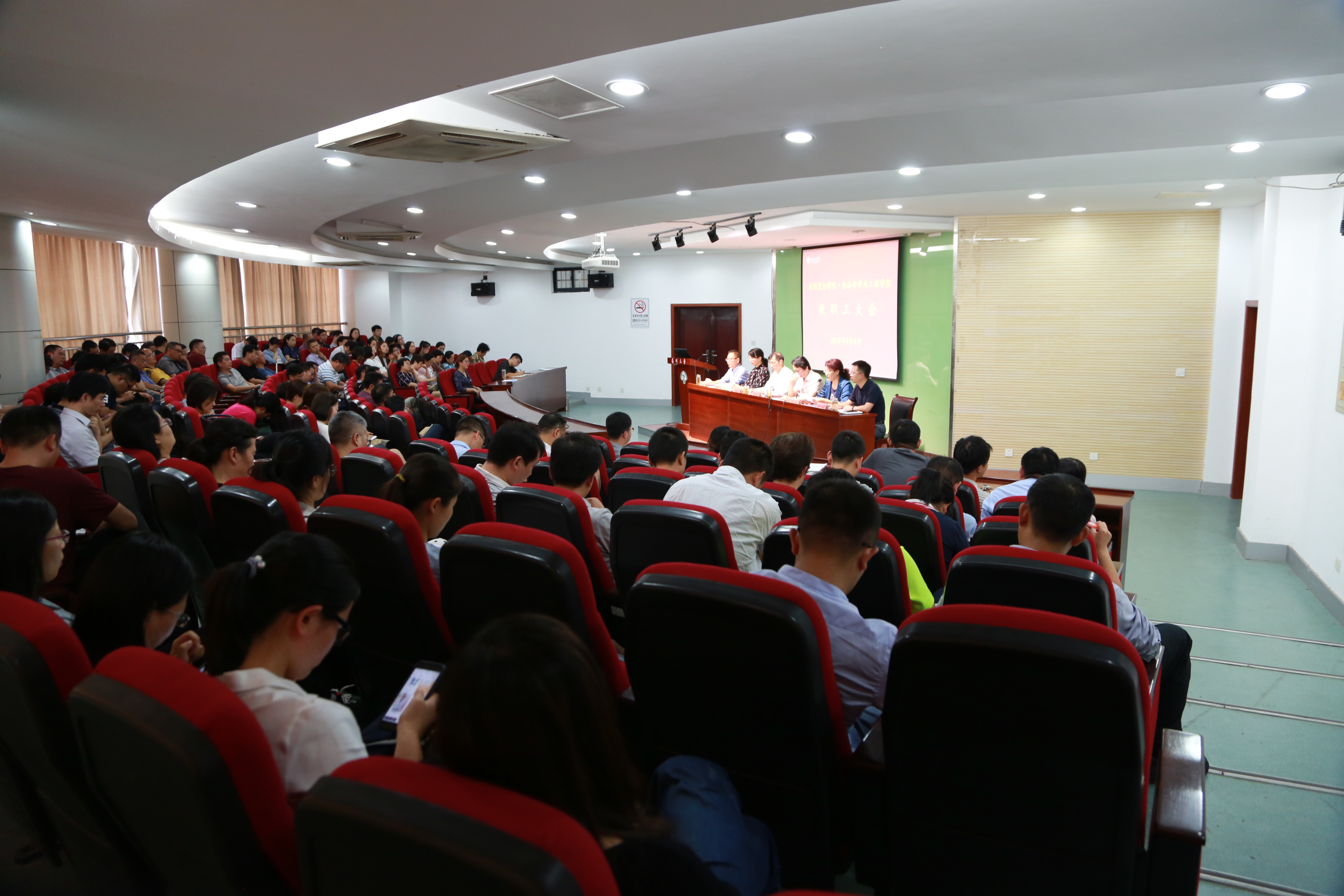 全体教职工参加会议。