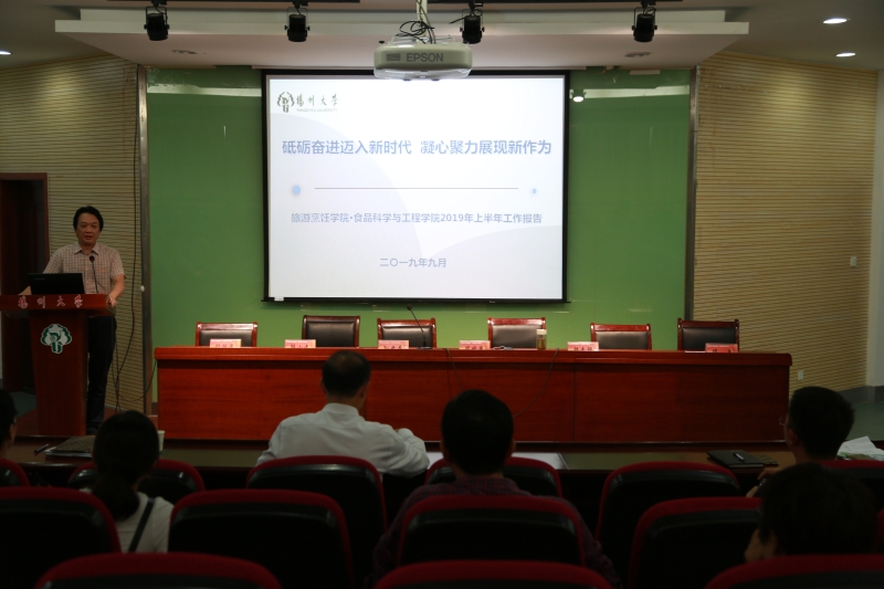 周晓燕在《砥砺奋进迈入新时代 凝心聚力展现新作为》的报告中,系统总结了上半年各项工作和取得的主要成效。报告指出,上半年,学院上下群策群力,同心同德,紧紧围绕年度目标量化指标和年初制定的十项重点工作和十项主要工作,落实有力,进展有序,整体办学水平持续提升,各项事业持续向好,并就下半年工作进行部署,重点强调了一流专业申报、师资队伍建设、人才培养质量提升、学科交叉融合、科学研究、国际化办学、中餐繁荣基地、公用房改革试点等工作。各位院领导就分管工作和年度目标任务进行了分析和安排,提出具体的措施和要求。