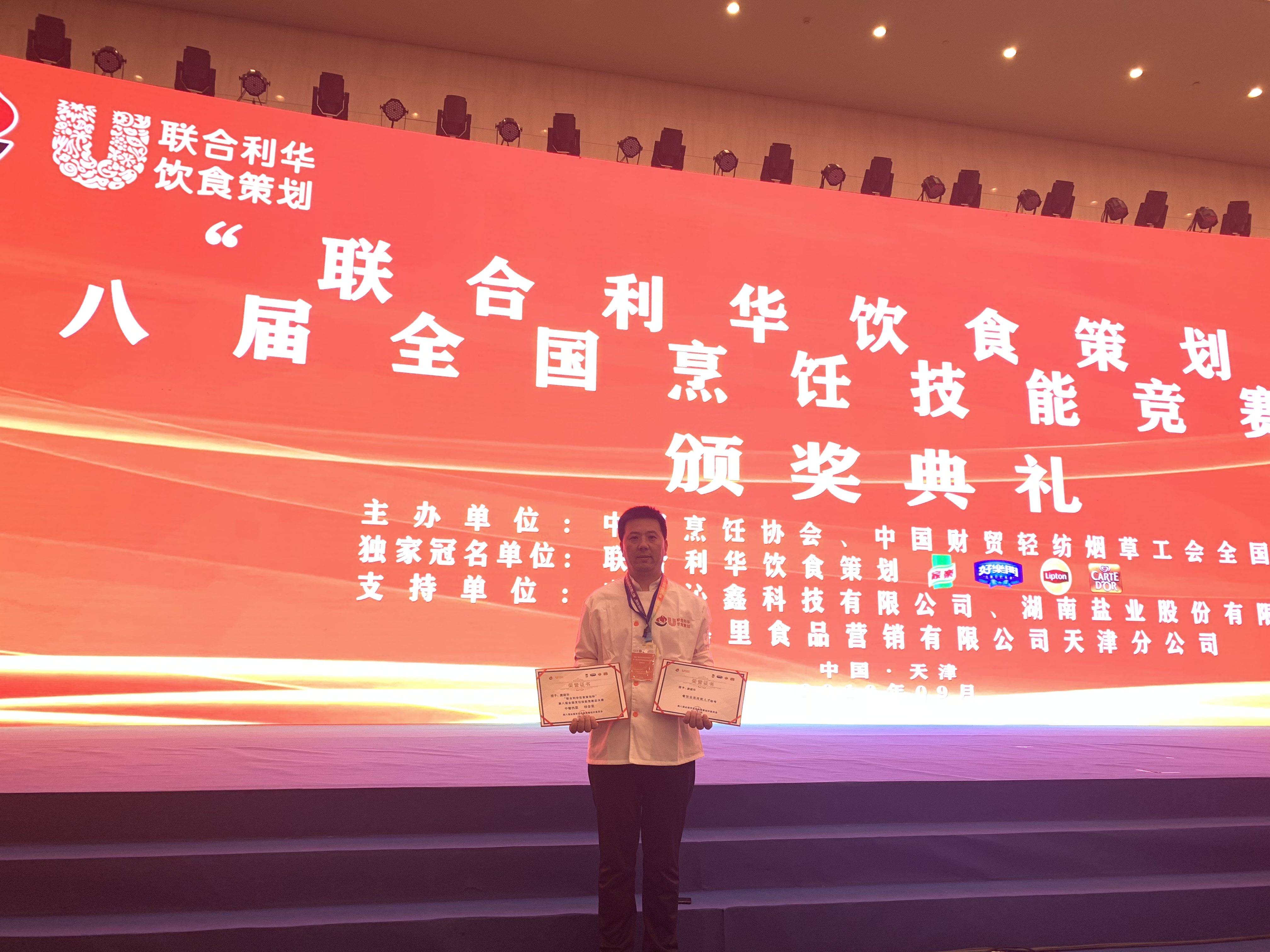 由中国烹饪协会、中国财贸轻纺烟草工会全国委员会共同主办的“联合利华饮食策划杯”第八届全国烹饪技能竞赛总决赛9月25日在天津落下帷幕,我院烹饪与营养系教师唐建华、何小龙在总决赛中,不畏强手,奋力拼搏,大胆创新,成绩突出,分别获得热菜特金奖、创意凉菜特金奖。