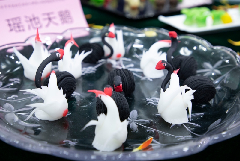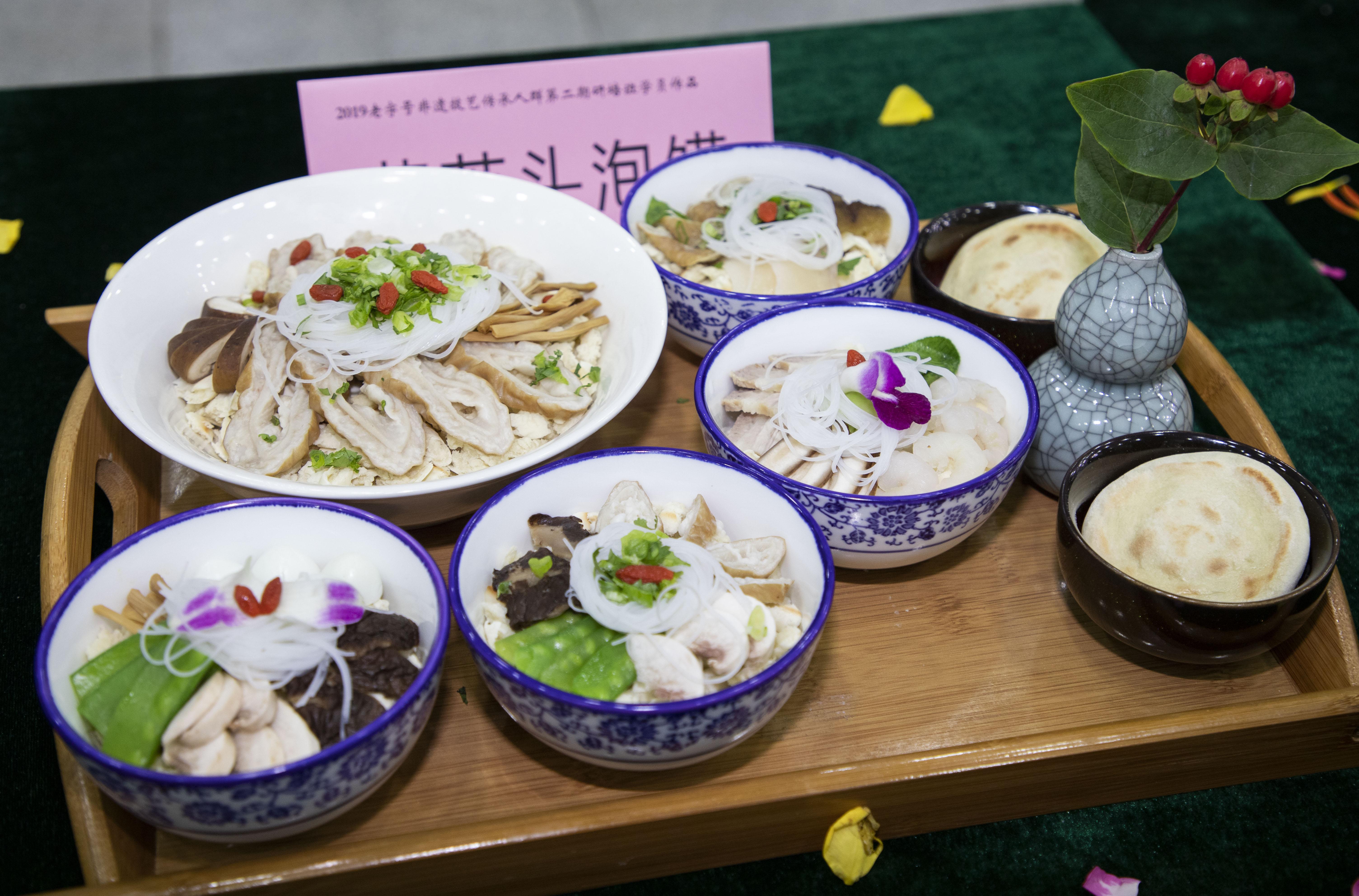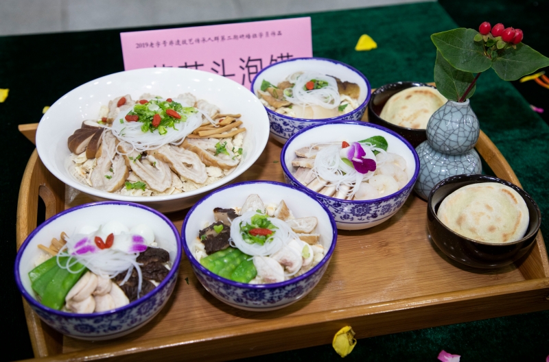 结业典礼上展示了沈阳鹿鸣春、太原郭杜林、陕西同盛祥牛羊肉泡馍等3家国家级,湖南杨裕兴、四川裕泰乾、重庆张鸭子等15家省、市级非遗作品。