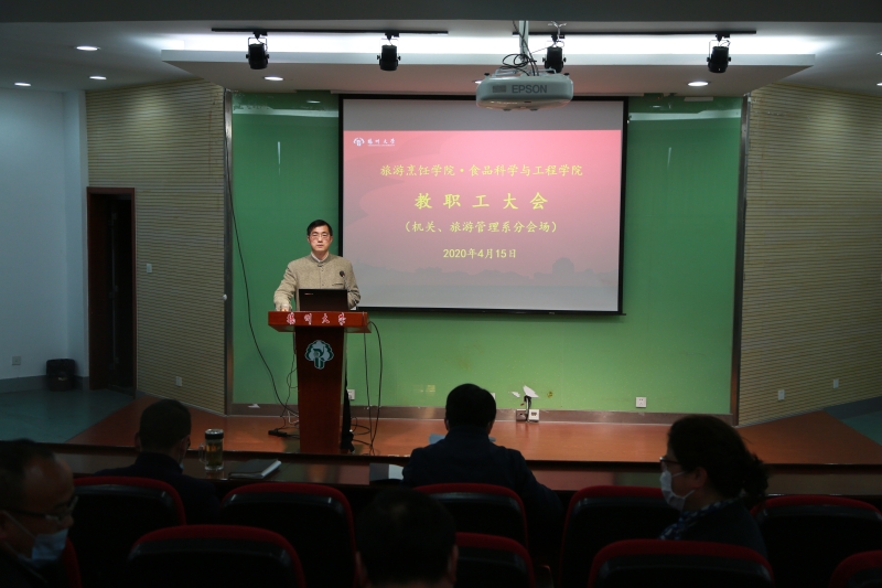 孙云寿作“法纪·诚信·责任”教职工疫情防控专题教育的宣讲,并传达了学校《关于疫情防控期间教职工外出管理工作指引》的文件精神。孙云寿在讲话中指出,我们既要全力打赢疫情防控战,也要全面完成“十三五”规划目标任务,全面谋划“十四五”规划。要在肯定成绩的基础上,不断明晰学院发展面临的形势和问题,抢抓机遇,以更加奋发有为的姿态、积极努力的状态,乐观向上的心态,紧盯目标任务不放松,强化担当勇作为,主动投入到工作中,增强信心、坚定决心,保持恒心,我们一定会圆满完成年度工作目标任务。