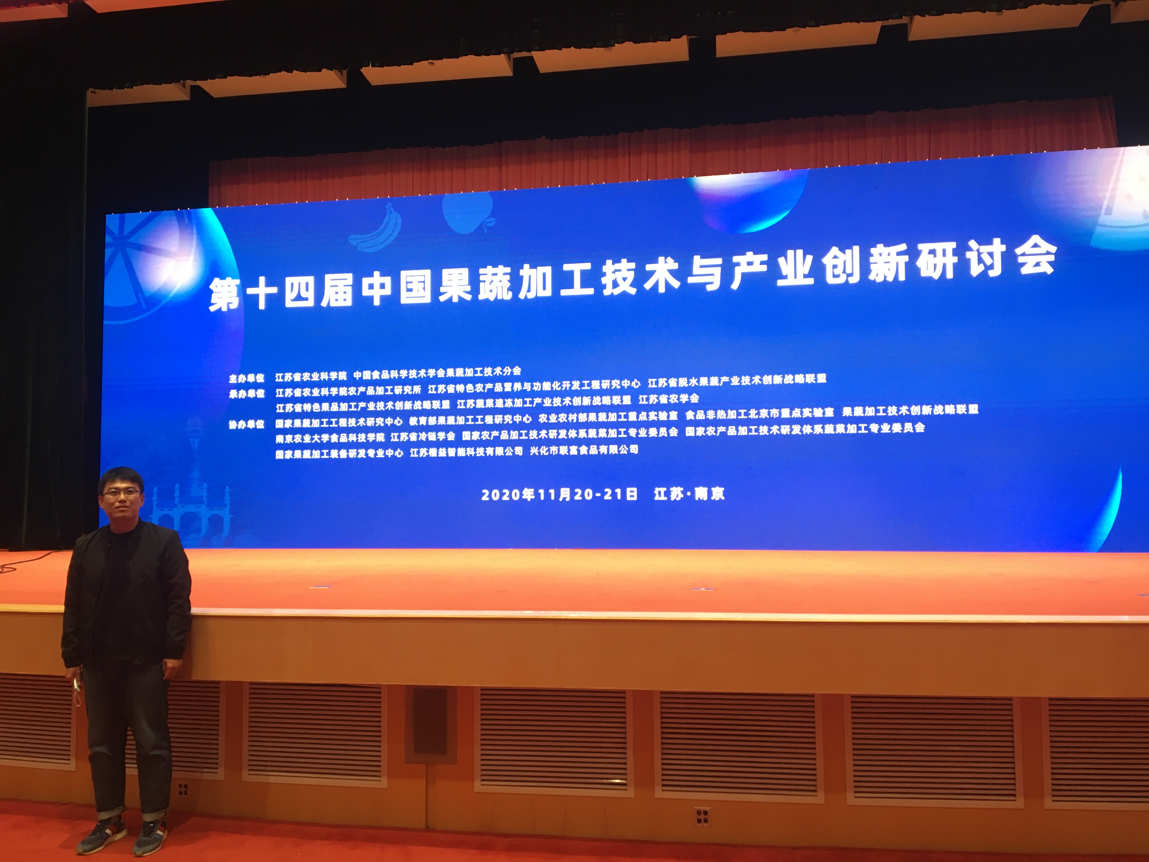 2020年11月19日-21日,由中国食品科学技术学会果蔬加工技术分会和江苏省农业科学院联合举办的“第十四届中国果蔬加工技术与产业创新研讨会”在江苏南京成功举办。应大会邀请,我院青年教师宗帅博士做了“粒毛盘菌多糖缓解肠道炎症的作用研究”专题学术报告,向与会专家、学者介绍了我院的发展现状,以及团队在果蔬加工和功能性食品领域的研究成果,并就果蔬加工新技术、功能成分新作用、果蔬产品新产业等问题与业内专家进行了深入的交流和讨论。